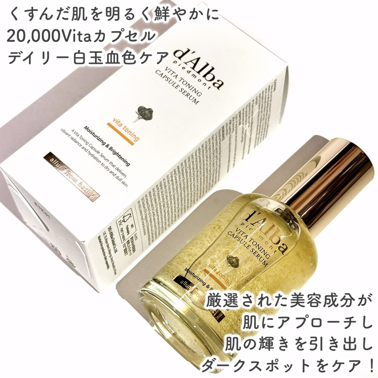 ♡d'Alba@dalba_japan さまのトナーとセラムです🫶✦ビタトーニングセラムトナーしっとりするのにべたつかないセラムトナー🥰乾燥が気になるところには重ねてつけてるけどツヤがでて保湿もしっかりされるよ✨キャップがなくてプッシュしてさ...