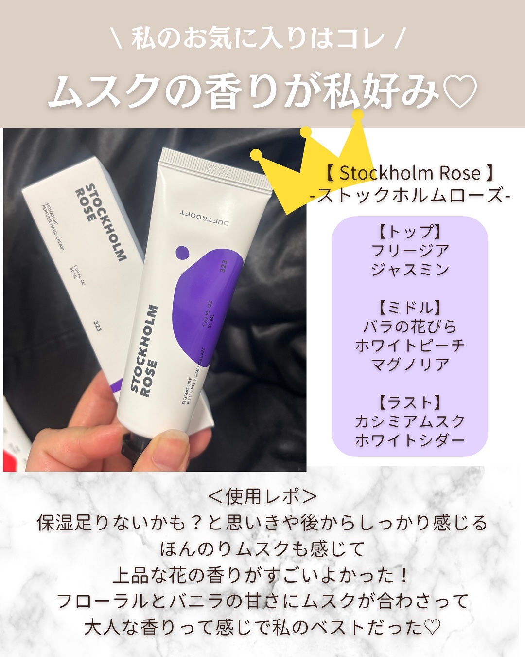 DUFT&DOFT様のSignaturePERFUMEHandCreamをお試しさせて頂きました。今回はSOPHYSOPHY(ソフィーソフィー) PINKBREEZE(ピンクブリーズ)STOCKHOLMROSE(ストックホルムローズ)の3種類...