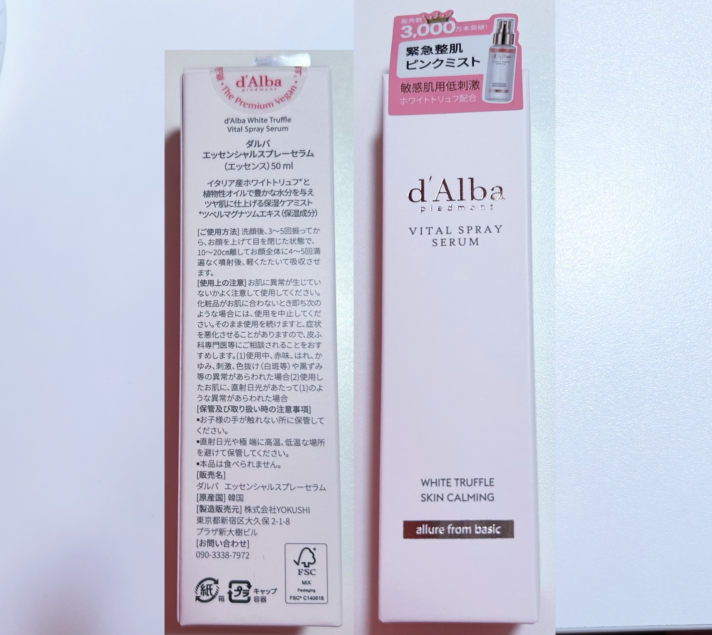 ダルバ ダルバ ホワイトトリュフバイタルスプレーセラム | 2,420円 |