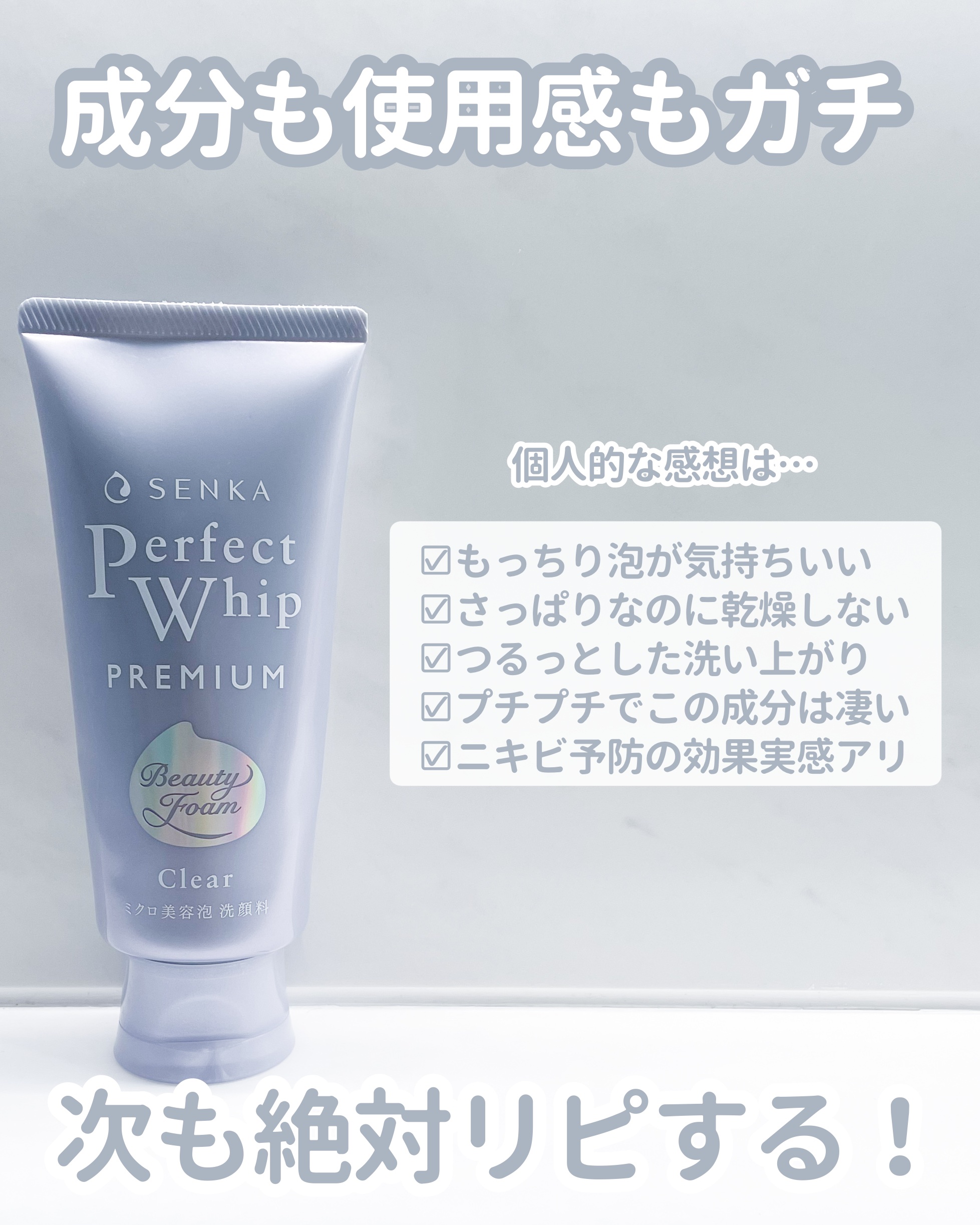 SENKAさまからいただきました。センカ プレミアムパーフェクトホイップ クリア(医薬部外品)✔️角質ケア✔️くすみ*1ケア✔️ニキビ予防もこもこのミクロ泡でしっかり泡立てて洗うのが気持ちいい🫧泡立てる前はすこし粘り気のあるテクスチャ。毎日使...