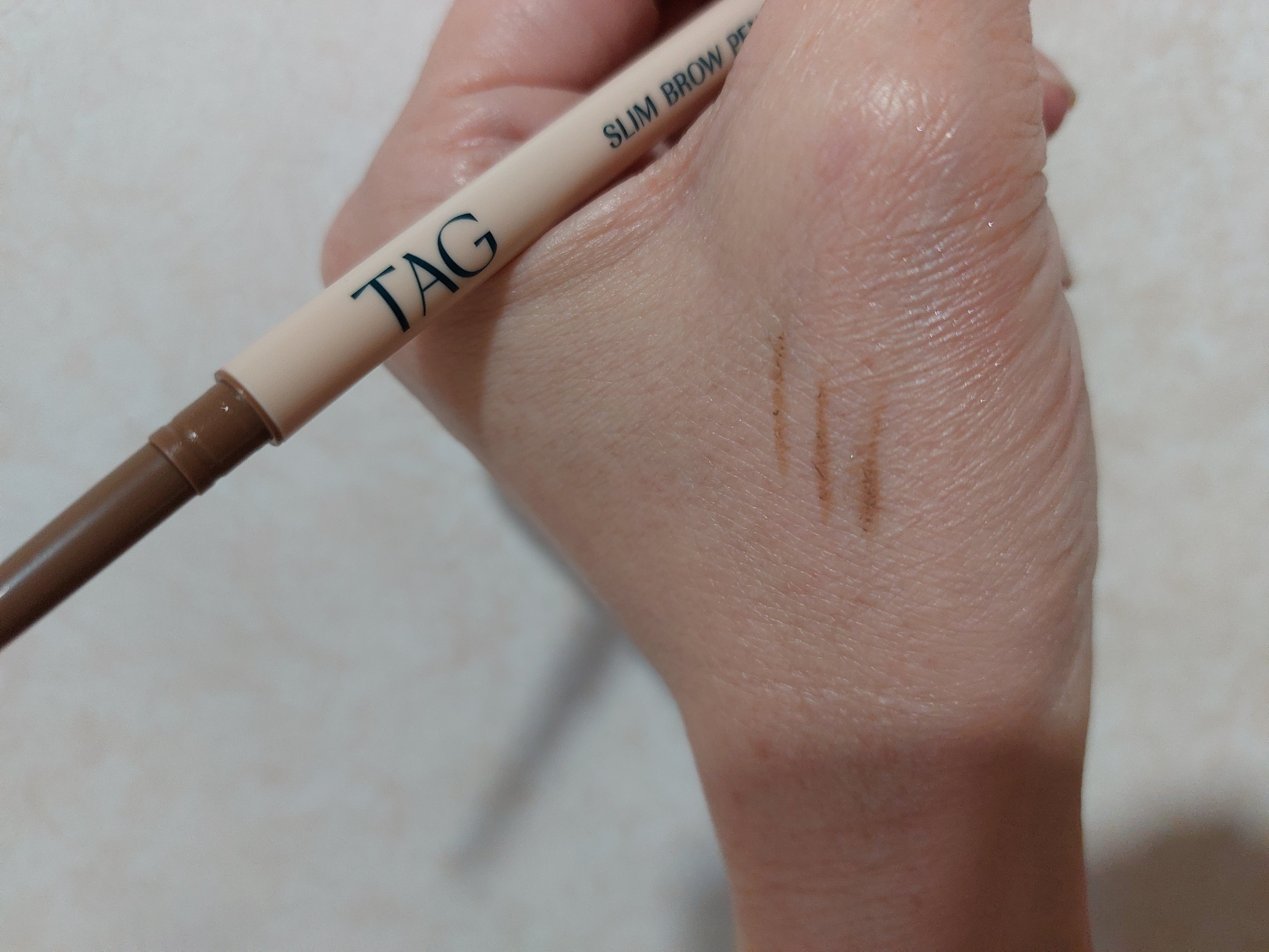 .✾TAG スリムブロウペンシル..初心者でも活用できるスリム三角シェイプによりプロみたく簡単に描けちゃうアイブロウペンシル✨.2mmのスリムなエッジでマユ頭までも1本1本繊細ボリューミィな仕上がりに☝🏻.重ね塗りしても濃くならず、やわらかな...