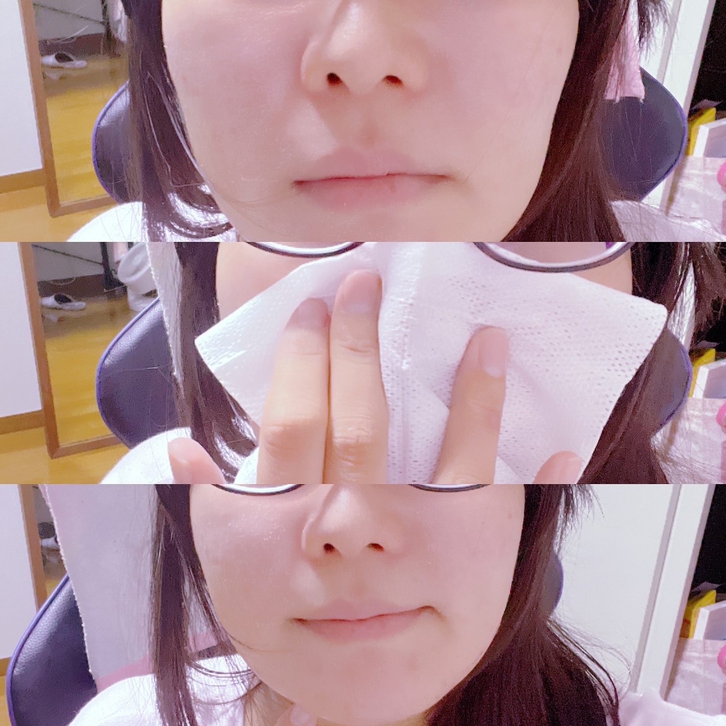 表裏でボコボコとフラットそれぞれ違う面になっています ただ水分が少ないのか張り付くわけではないので下向いたりしたら落ちてきます…… 最後の方はカサカサになりがち…… 匂いがハーブのような昔からの韓国化粧品の匂いというイメージです パッドはとっても便利ですがコスト面と衛生面が少し…… 拭き取り化粧水かブースターの方が好きかも 機会があれば購入検討します