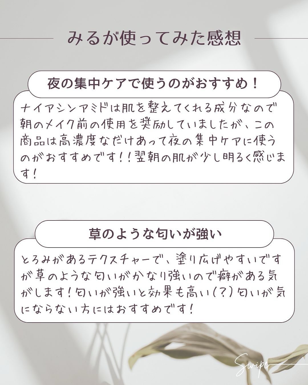 Anuaの美白特化型美容液です✨ くすんだ肌トーン、シミやニキビ跡などの悩みにおすすめです◎ ナイアシンアミド、トラネキサム酸などの美白成分をふんだんに配合し肌の透明感を引き上げ、肌トラブルの色素沈着のケアもできます🫶🏻 炎症鎮静効果もあるのでニキビに悩む方にもおすすめの美容液です🥰