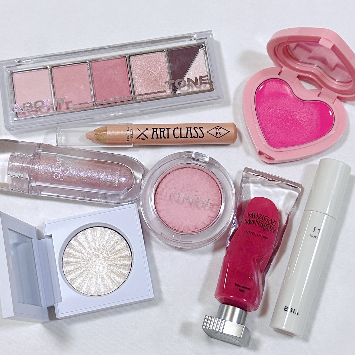いつもより少し暖かめなピンクメイクレシピ🗒️💄特にRealishカラコン、ofraのハイライター、fweeのチークパレットまで買って大満足すぎるくらい可愛かったので共有!✨✨(チークパレット、バッグ👜につけてたら甥っ子が"使わないの〜...