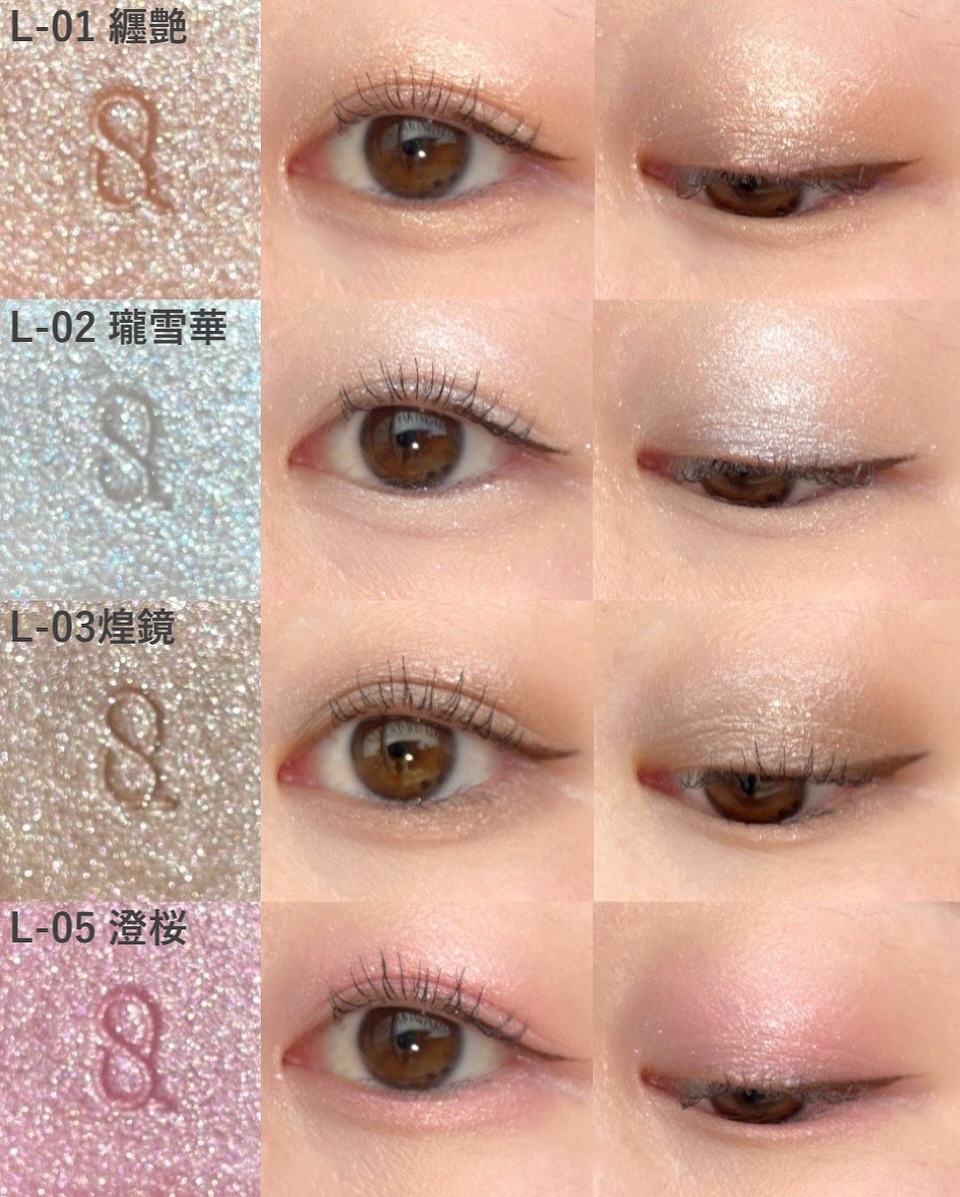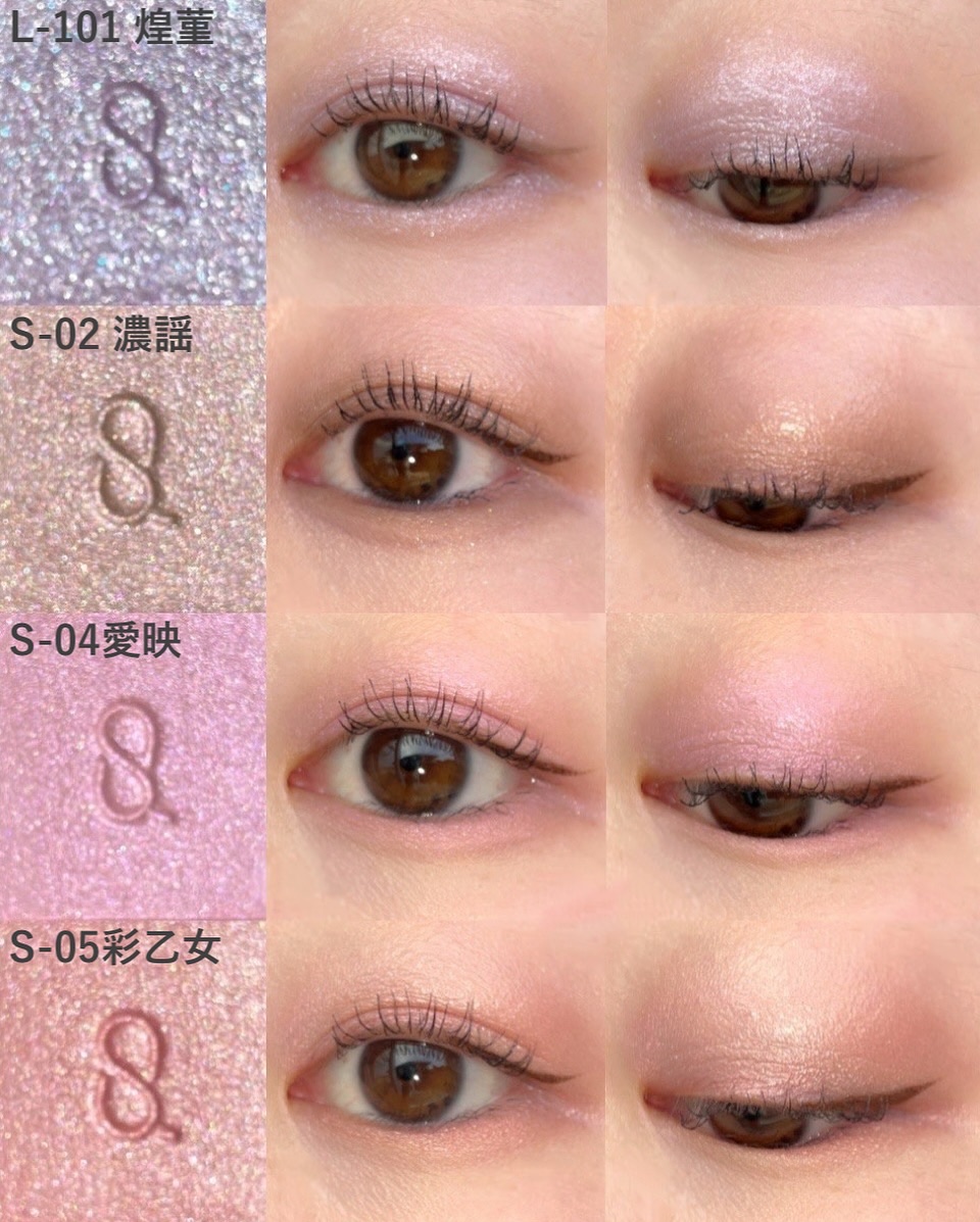 - リニューアル発売 自由自彩。意思の宿るまぶた。 美しい色艶×肌とつながるようなシームレスで上質なテクスチャー。 ひと塗りで“私らしさ”の解像度を上げる、シングルアイシャドウ。 ■P・・プリズムタッチ 角度や動きで色が規則的に変化する偏光パールと、複雑に色を乱反射するカラーパールを配合し、立体的な目元を演出する新質感※。 重ねるほど、メタリックな輝きが躍動感を解き放ち明るい発色に。 淡くなじませるほど、輝きが肌になじみおだやかな色合いに変化して見え、変幻自在に使えます。 粘度の高い液状オイルを配合し、まぶたにぴたっと密着。ヨレや粉落ちせず美しい仕上がりに。 ※SUQQU 内において ■L・・ラスター 眩しいほどの煌めきを放つ存在感のある大粒パールがぎっしり。 SUQQU 従来品※よりもサイズが大きい大粒パールを配合しながら、オイルの配合量を増やすことで、大きなパールも粉落ちせず肌に密着。 ムラにならず、均一に肌と調和するので上品かつ宝石のように華やかな目元を演出します。 ※SUQQU トーン タッチ アイズ・ステラー ■S・・サテン まるでサテンのようになめらかで上品な光沢感。 配合する小粒パールの大きさを揃えることで煌めきに統一感が生まれ、薄膜のヴェールで肌に溶け込むようになじみます。 さらに、粘度の高い液状オイルを配合し、まぶたにぴたっと密着。ヨレや粉落ちせず、美しい仕上がりに。 ■M・・マット 潔いノンパール処方で見たままの色がまぶたに美しく発色。 SUQQU 従来品※よりオイルを大幅に減らし、ふんわりとやわらかなマット感を際立たせつつも、微細な板状の粉体を配合することで粉っぽさを軽減し、なめらかに肌のキメにも入り込み確かな高密着を実現。 ※SUQQU トーン タッチ アイズ・フロスト
