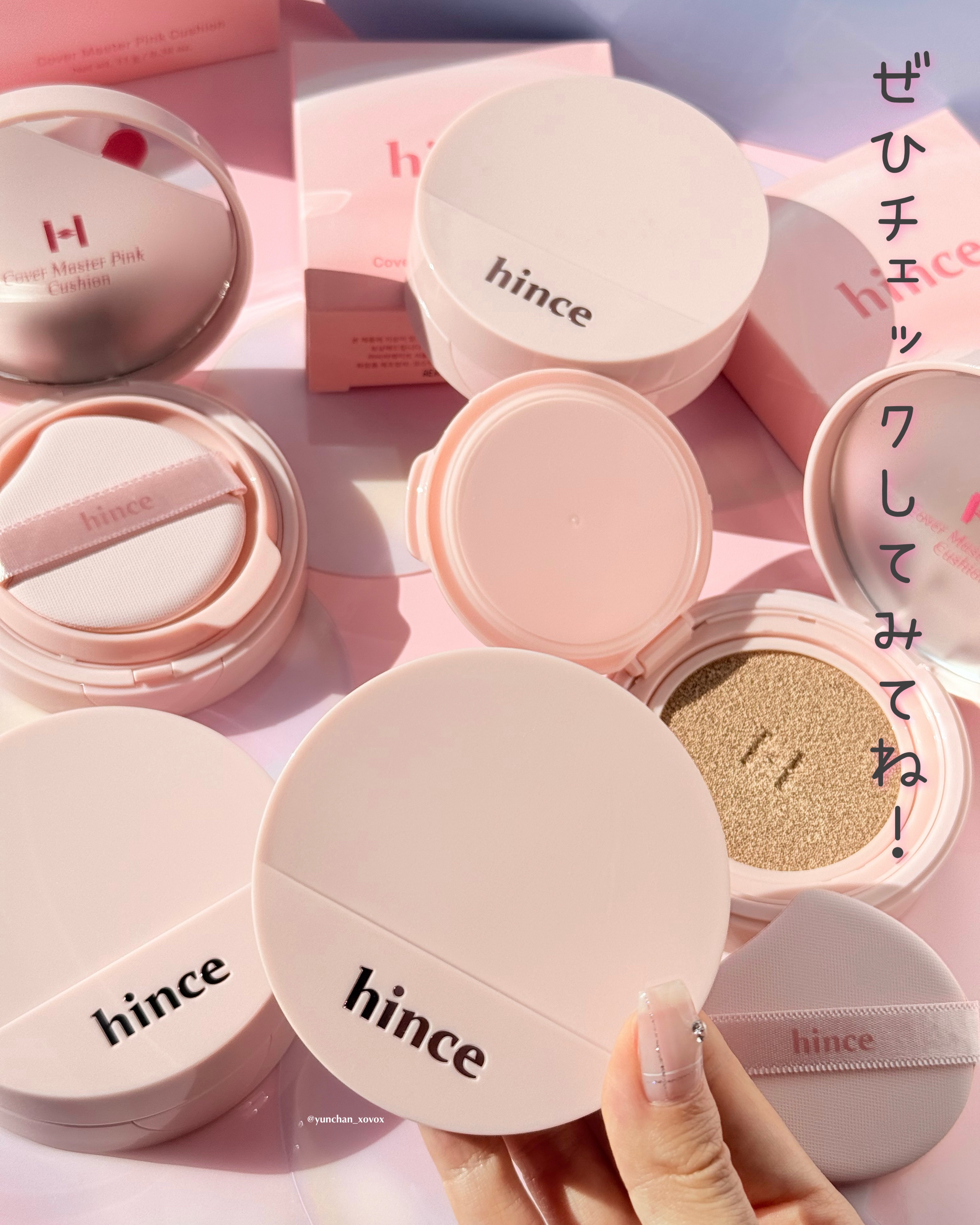 【メガ割必見】hinceの新作ピンククッション💗今までの白クッションと青クッションのいいとこ取り!カバー力が高くて、薄膜なのに肌に密着。66%スキンケア成分入りだから、乾燥しらずなセミマットな仕上がり✨肌が不安定で皮脂が出やすい時期は少しヨレ...