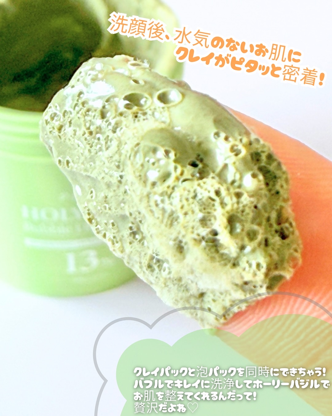 【P.CALMホーリーバジル炭酸バブルパック】バブル✕クレイの新感覚パック!塗って置いとくだけなのに、しっかり毛穴をお掃除してくれるから、すっきり!ホーリーバジルは奇跡の薬草と言われて抗菌作用があるんだって!お肌を健やかに導くよ♡週に2回、簡...