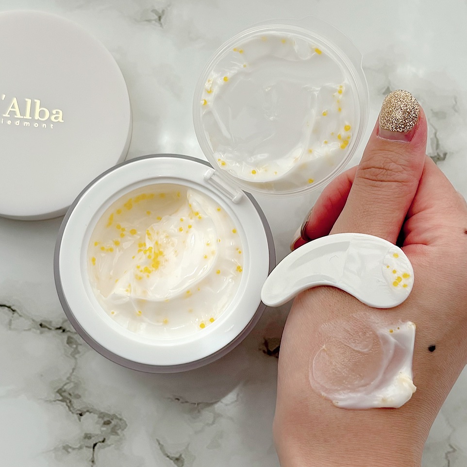 d'Albaの大人気ビタクリーム試してみた✨️ビタトーニングカプセルクリームビタミンカプセル&ブライトニングクリームのWレイヤー🤍まるでライトを灯したような、明るく澄んだデイリーケアが可能️⭕️肌のくすみ、ハリ、トーンのケアができるクリーム!...