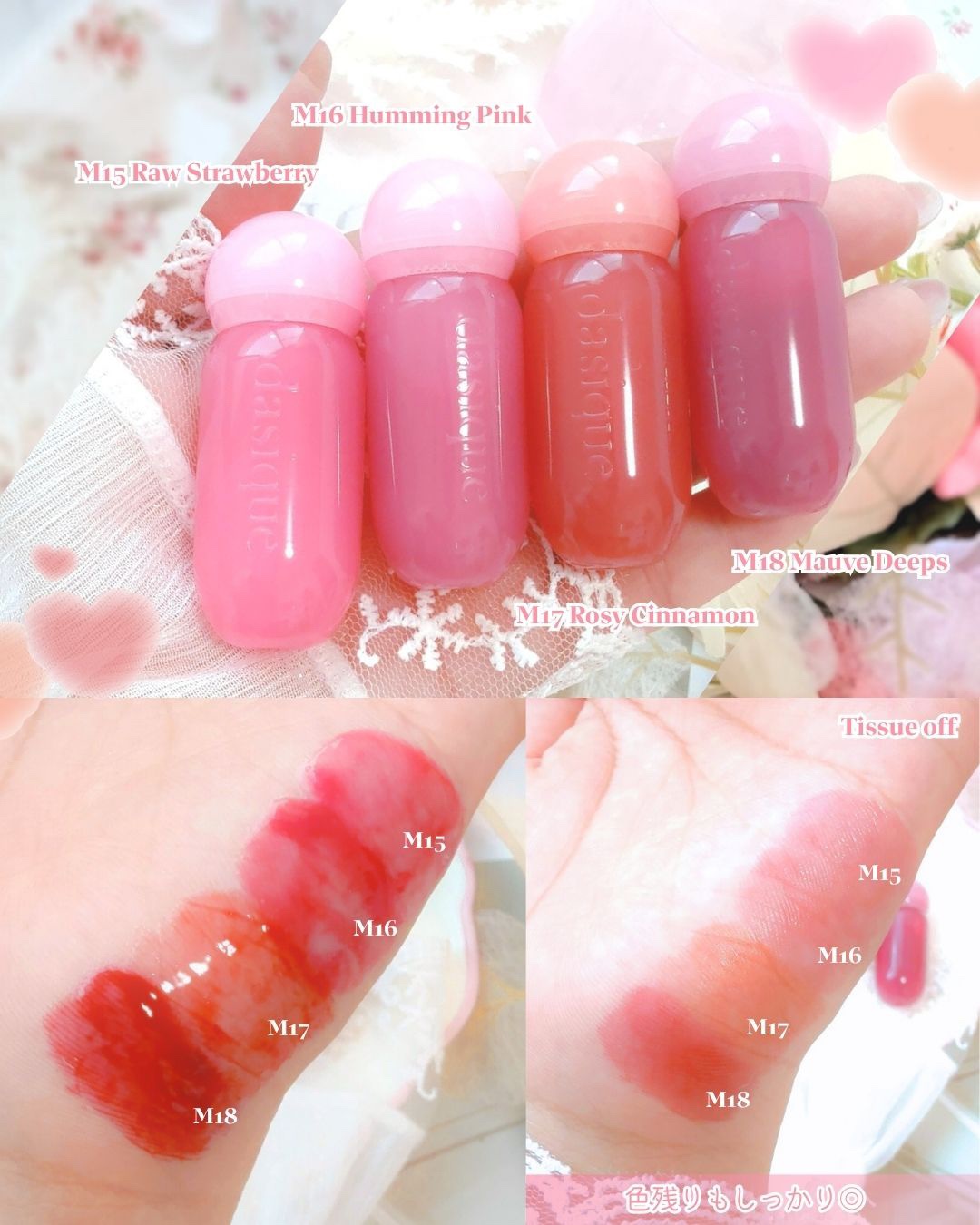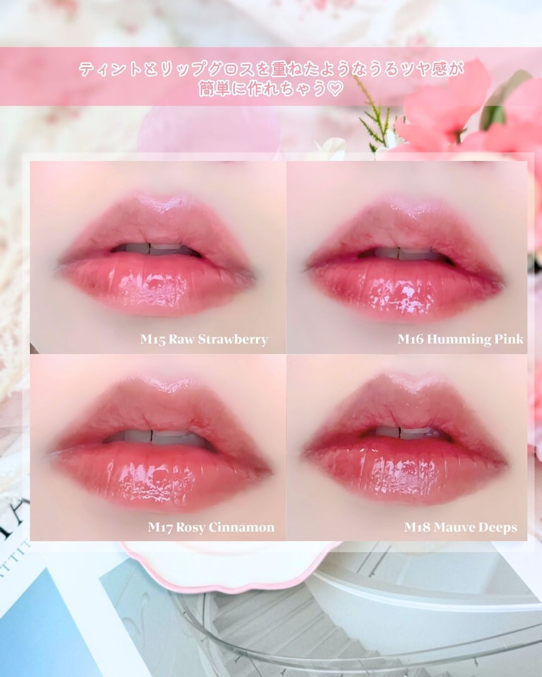 - 【夏新作2カラー登場!】 まるで果実のしずくがそのままリップになったような、みずみずしさと繊細なツヤを詰め込んだ「ジュージーデューイグロウティント」 夏新作で登場する新色「ベリーハート」、「タロミルク」は、透明感とふんわりとした色づきを徹底的にこだわって、何度もテストを重ねて生まれた特別なクールトーンカラー。 ひと塗りで唇をうるおし、重ねても重くならず、果実たっぷり!光をまとうような仕上がりに! - 蜂蜜に漬けた果物のように、うるちゅるふっくらとした果汁粘膜「ジューシーデュイグロウティント」 ミニだけの限定4色 15 ローストロベリー 16 ハミングピンク 17 ロージーシナモン 18 モーブディープス ♡唇に触れた途端、ぷるんと色っぽい果汁コーティング 果汁コーティングがじゅわっと唇に広がり、透明に輝くうるちゅる感を!蜂蜜に漬けた果物のようにぷるんぷるんとした唇を演出するグロウティント ♡イエベ、ブルべに合わせた多彩なカラーバリエーション 14色のカラーバリエーションで単独または、2色レイヤーリングして様々なリップメイクを演出 ♡ティント+リップグロスを一気に塗る効果! ティントの鮮やかな発色とリップグロスのうるうる透明ツヤ感が何度塗り重ねてもべたつかせず、唇にピタッと密着! 2025年11月1日(土)より、Qoo10公式ショップおよび東京フラッグシップストアにて発売予定