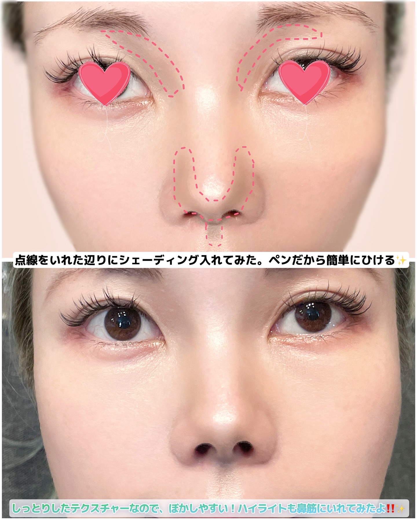 - 鼻筋シュッと、簡単立体メイク シェーディングとハイライトが1本になった便利なスティックタイプ。小顔効果や立体感を演出するほか鼻筋、涙袋、唇などにも使えるマルチスティック! クリーミーな質感でムラなく馴染み初心者でも失敗しにくい。