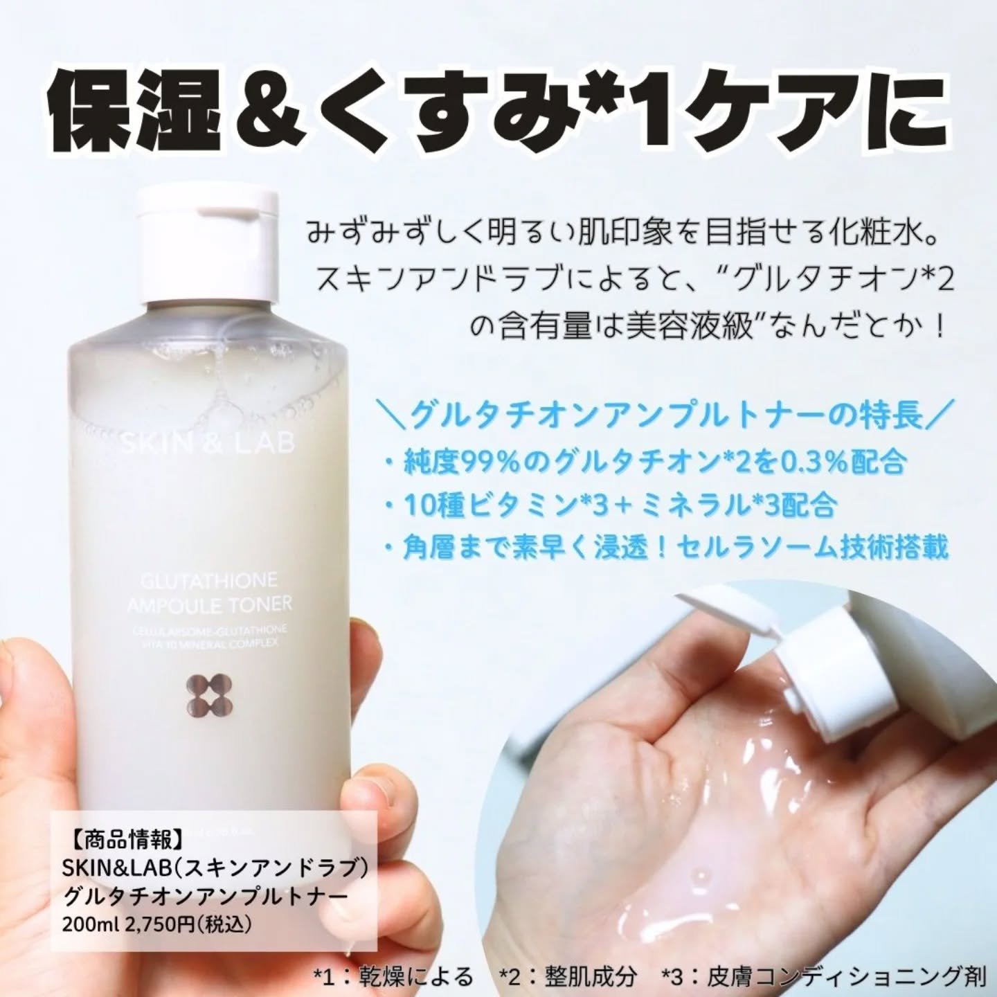 【SKIN&LABさまからいただきました】スキンアンドラブグルタチオントナー▼特徴高純度グルタチオン(整肌成分)配合のまるで美容液のような化粧水▼香り奥にほんのり原料臭を感じる気もするけど、柑橘のような草花のような良い香り▼テクスチャー若干と...