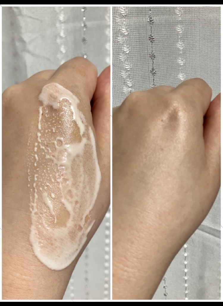 この感触は…初めてかも? しっかりしているのに、肌に伸ばすとスッと浸透する! シートマスクを使った後に顔に使いましたが、保湿に良かったです☺️ 全身使えるので、ヒザとかヒジに使いたいと思いました! シンプルで、ペタペタしないのが良かったです🌟