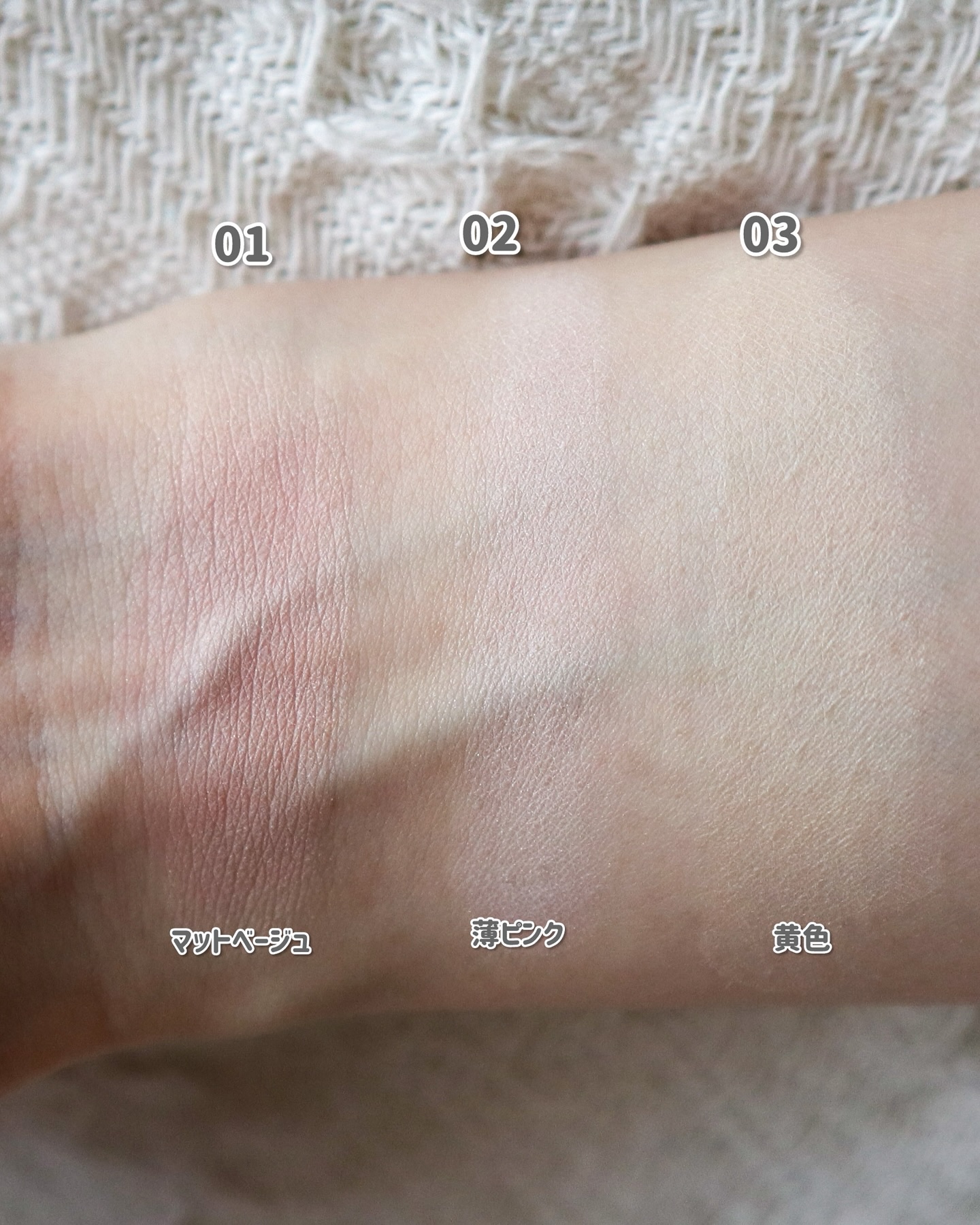 スポットメンテパウダー3色比較!muiceスポットメンテパウダー01ソコアゲベージュ02ビハダピンク03ムラ消シイエロー¥1,045くま消しや肌の色むら、マットハイライトとしてマルチに使えてどこでも高評価ですごく気になっていたスポットメンテパ...