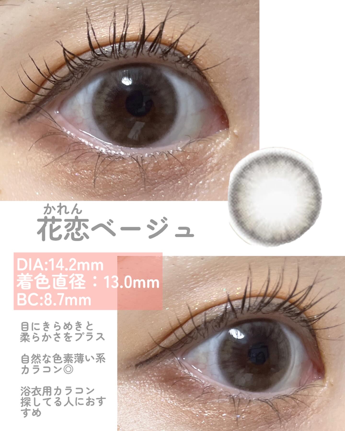 #Kaicaカイカに大人透明感あふれる美発色の新色登場!レンズスペック👇️DIA14.2着色直径13.0含水率58%1day『花恋ベージュ』ふんわりとしたベージュ吸い込まれるようなゆらゆらしたぼかし系レンズで、柔らかい瞳を演出してくれる『雪花...