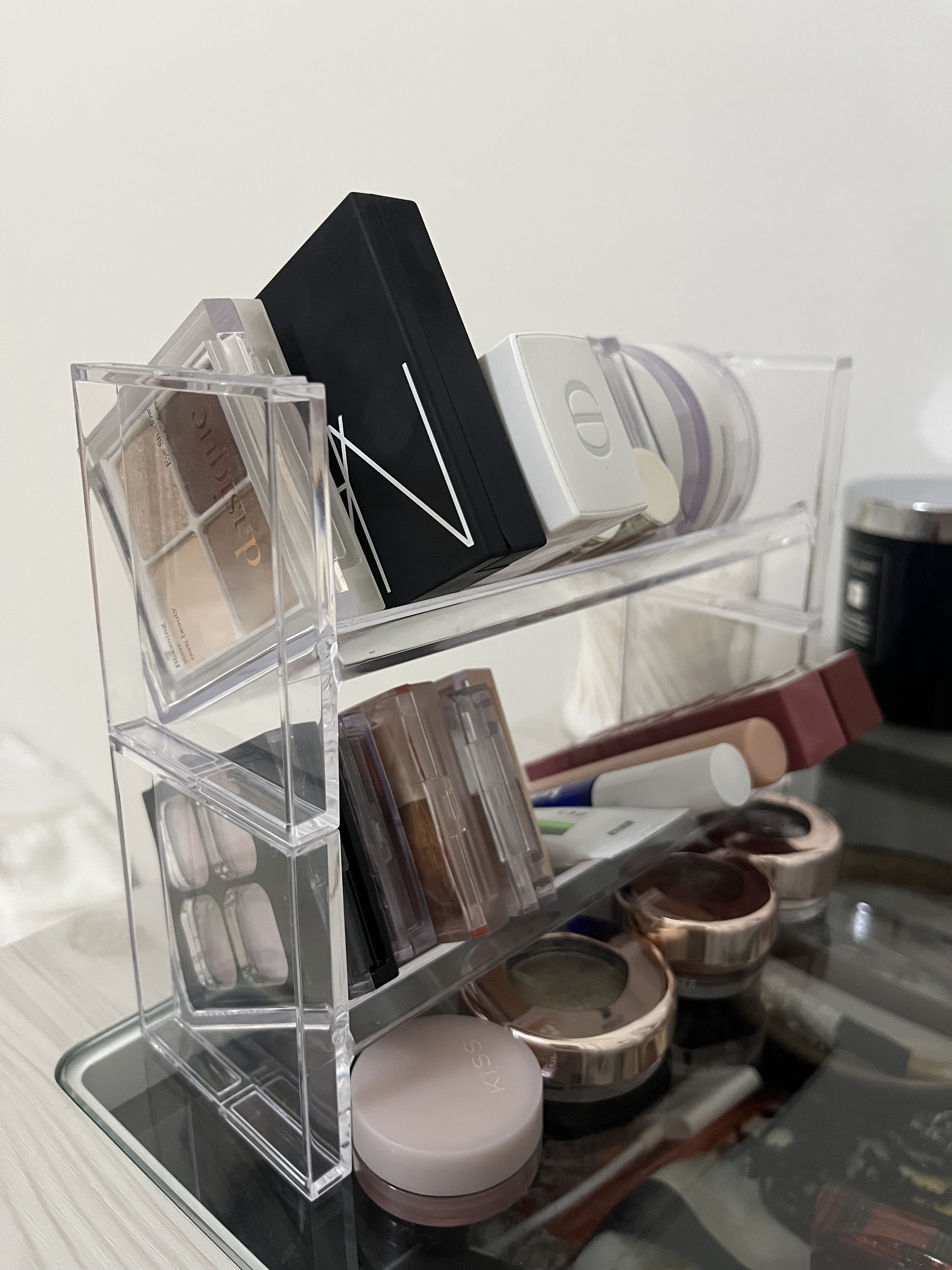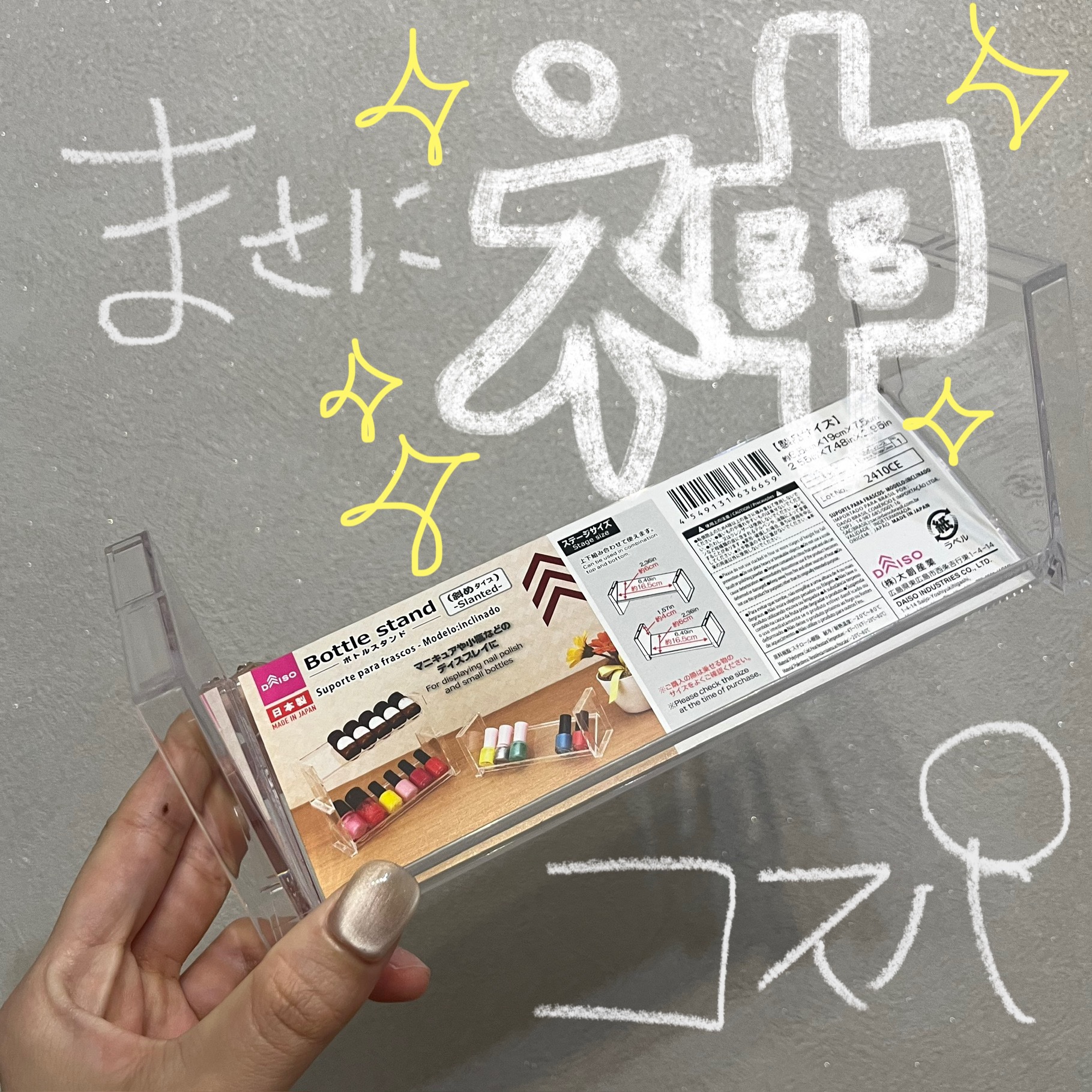 手持ちのネイルカラーが増えすぎてどこに何があるかわからなくなっていていたので収納方法考えました。 とりあえず100円ショップでどうにかなるかと、ダイソーへ行き買ってきたのは1個330円で売っているこの透明な、重なる透明収納ケース。 重ねられるので本数増えても大丈夫😊 このボックスのケースに、ネイルを横に倒して並べて収納しているんですが、こうやって収納するとボトルのそこに貼ってあるシールに書かれている品番と色が一目でわかるようになって、取り出したい色がどこにあるかぱっとわかるんです。 大変使いやすくなりました💡 私が重視したポイント○本数が増えても対応できる○収納した後にどこに何があるかすぐわかる