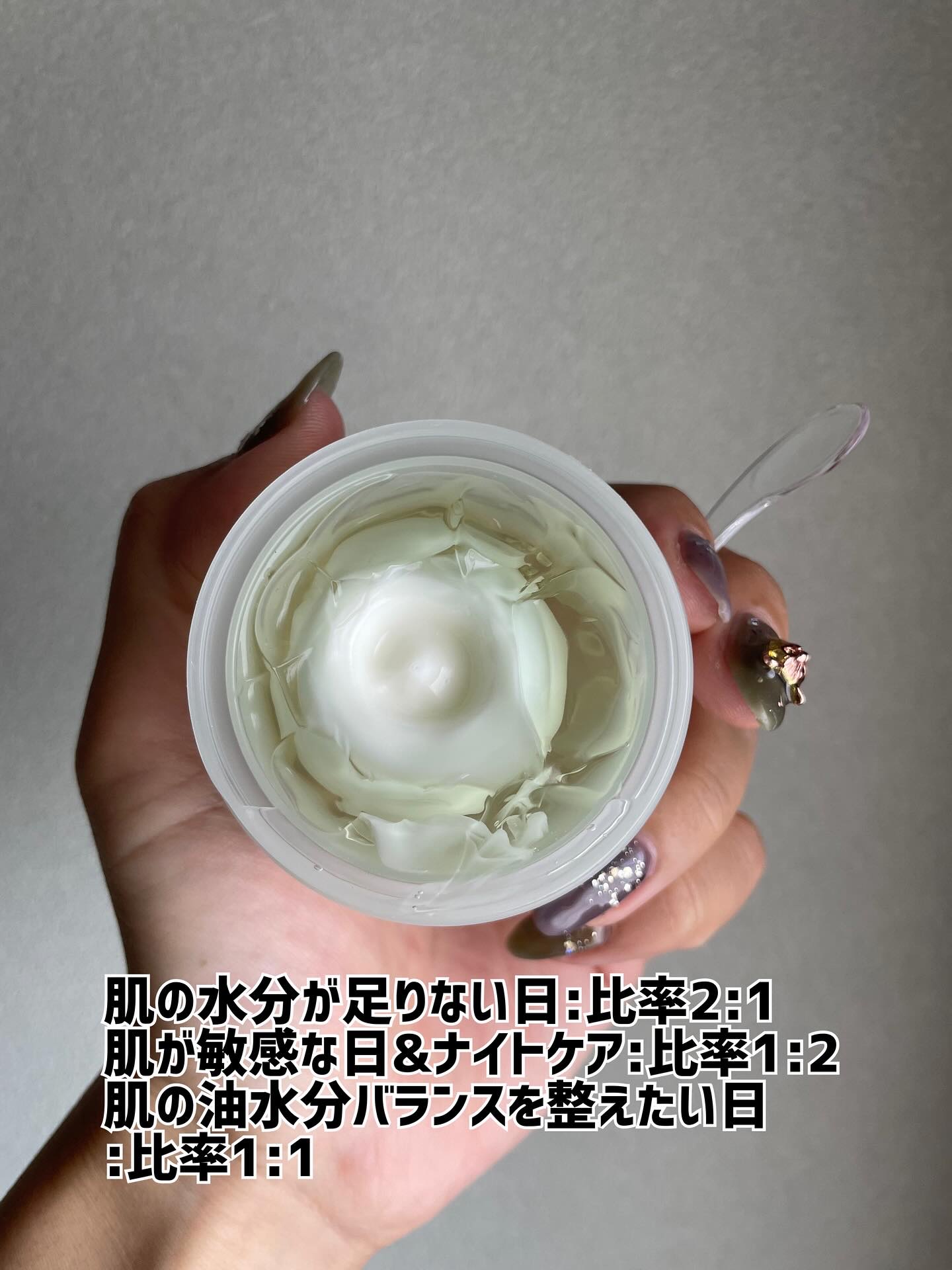 - 毎日変わる肌のコンディションに合わせて自分だけの肌レシピを作れるカスタマイズクリーム うるおいたっぷりのウォータージェルクリームと水分補給&生き生きとした肌印象に導くパンテノールクリームで同時にダブルケアができるこだわりアイテム。 べたつきなく柔らかいテクスチャーの2つのクリームが肌のコンディションを整え、もちっとハリ感のある肌へと導きます。 [使い方] 1)洗顔後、化粧水や美容液で肌を整えた後に、スパチュラで肌のコンディションによって、ウォータージェルクリームとパンテノールクリームを適量を取り、 混ぜ合わせてから顔全体に優しく塗り伸ばします。 *毎日変わる肌のコンディションに合わせて、乾燥が気になる時はウォータージェルクリームを、敏感に傾いた肌を整えたい時にはパンテノールクリームの量を多めにMIXして使用するのがおすすめです。