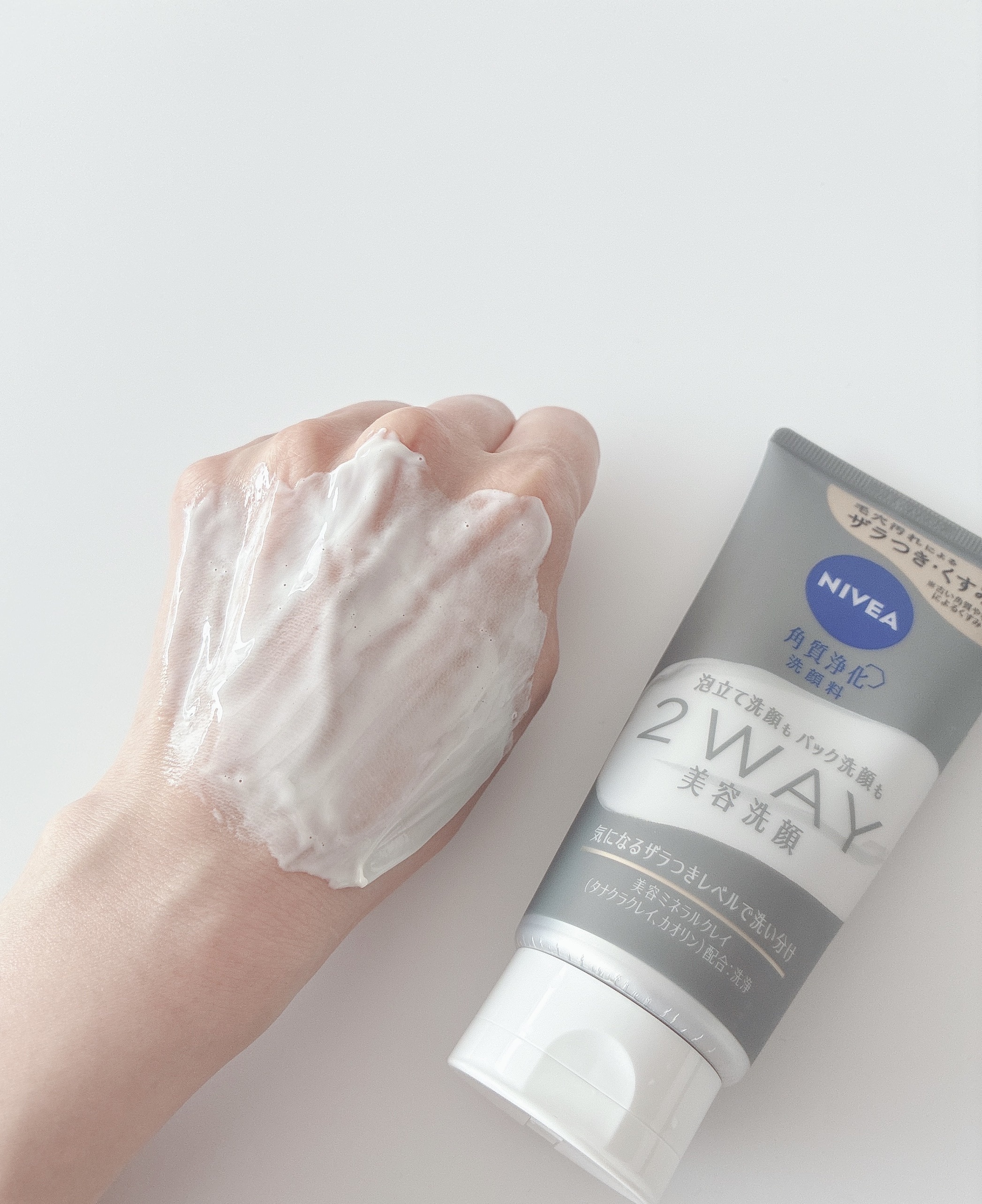 - ※商品名変更(旧名:ニベア クリアビューティー2WAY美容洗顔)に伴い、商品パッケージを順次リニューアル。尚、これにかかる商品の返品・交換は承っておりません。 気になるザラつきレベルに合わせて洗い分け。 毎日の汚れには泡でしっかり。 ザラつき気になる日はパックでごっそり。 古い角質を柔らかくほぐし、汚れを吸着する洗顔料。 毛穴汚れによるザラつき、くすみ*までさっぱり落とします。 透明感のある、毛穴の目立ちにくいつるんとなめらか肌へ。 ●美容ミネラルクレイ配合:タナクラクレイ、カオリン(洗浄) ●リッチホワイトパール保湿成分配合:ホホバオイル、加水分解コンキオリン *古い角質や毛穴の汚れによるくすみ