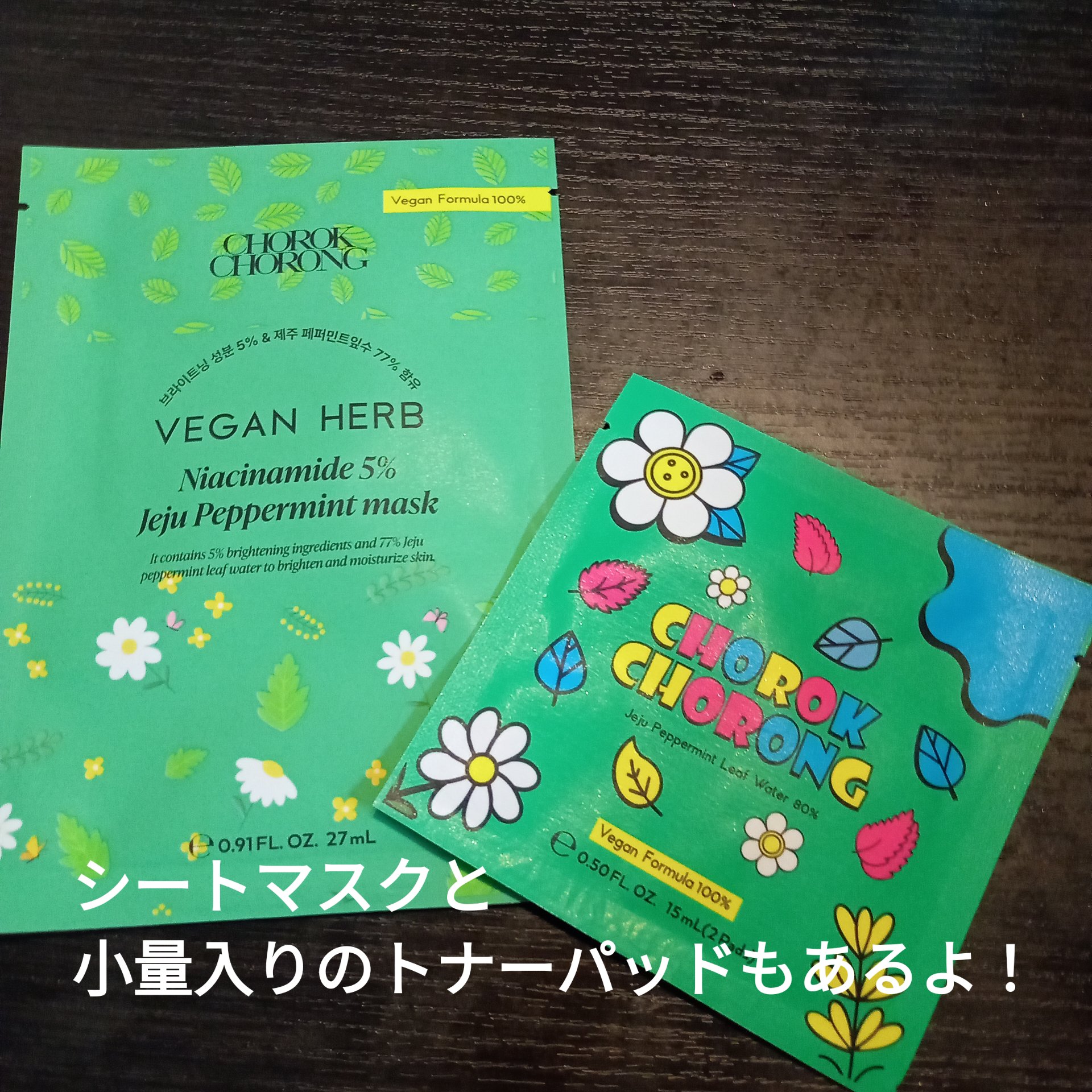 .✾CHOROKCHORONG・ビーガントナーパッド・ビーガンハーブヒアルロン酸セラム・ノンナノUVトーンアップクリーム・ペパーミントブライトニングマスク・旅行用ペパーミントトナーパッド..ビーガントナーパッドは澄んだチェジュ産ペパーミント葉...