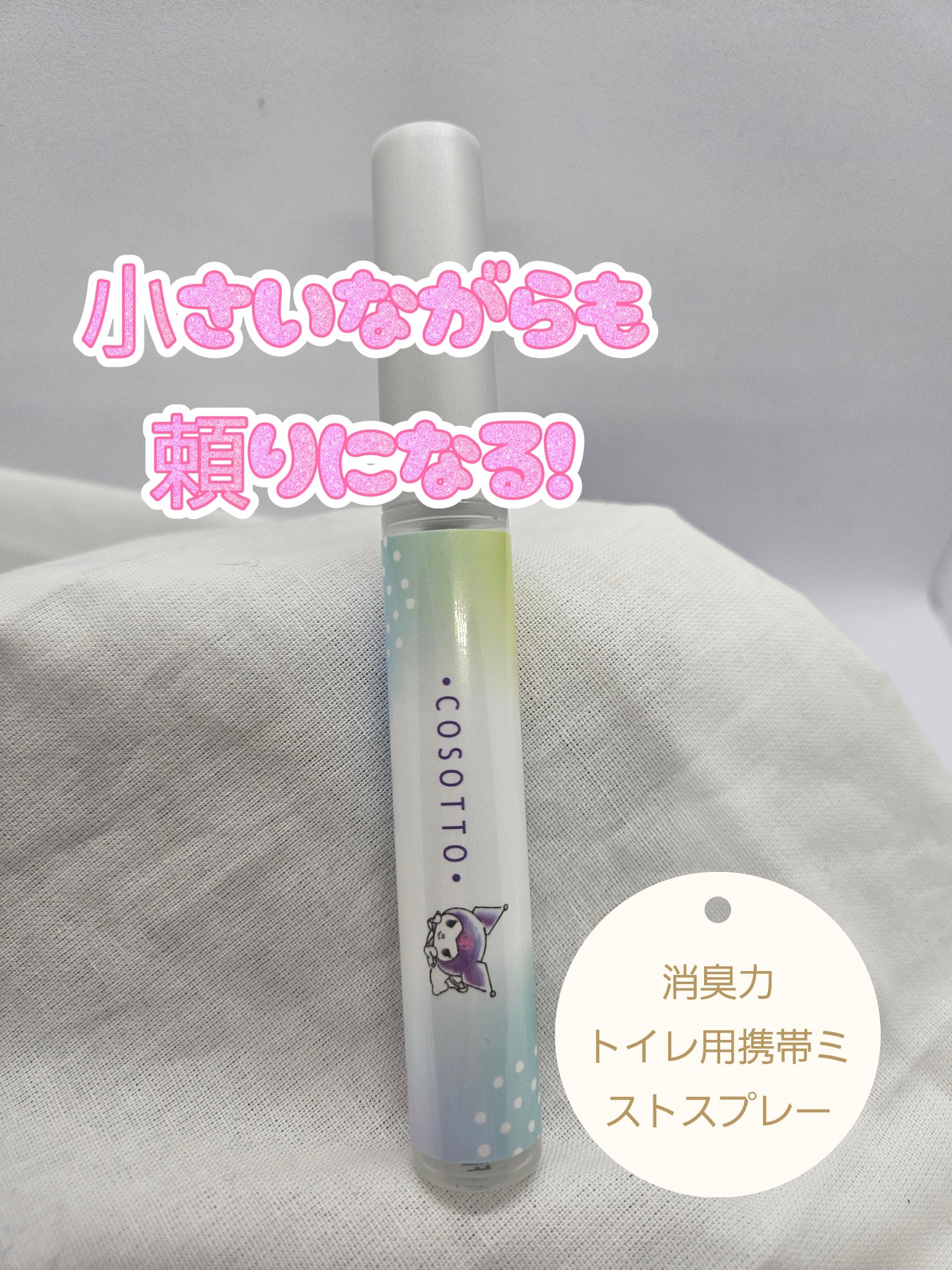 - 外出先のトイレで気になるにおいをこそっと消臭できるミストタイプのスプレー。「クロミ」、「マイメロディ」を起用したデザインに一新してリニューアル発売。