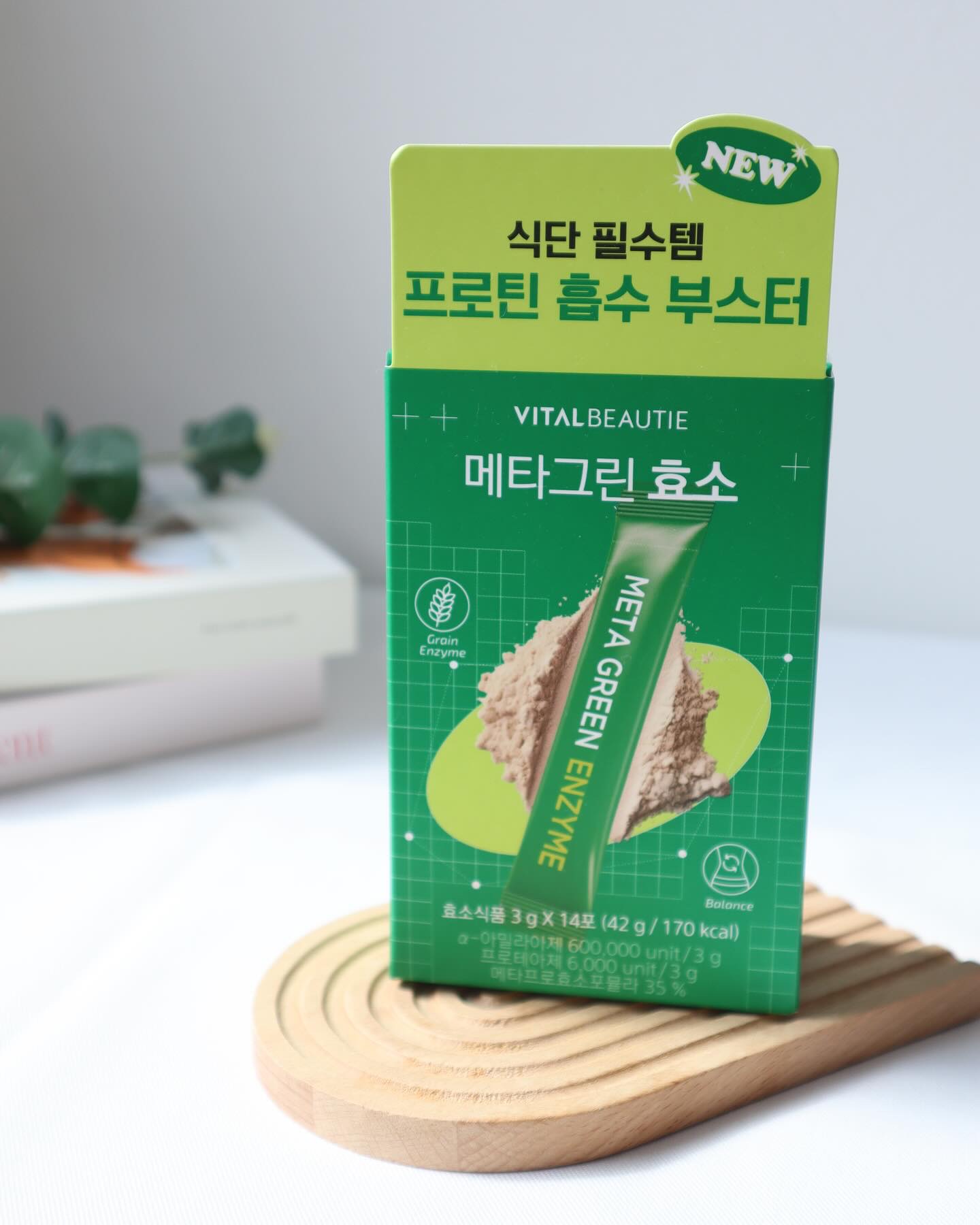 VITALBEAUTIEメタグリーン酵素美味しく手軽に飲める食前の新習慣✨酵素と乳酸菌を含む穀物パウダーで、バランスの良い食事をサポート!スノーパウダー形状でさらっと溶け、飲みやすい!香ばしい穀物風味で、なめらかな1包❕口のなかでサラッと溶け...