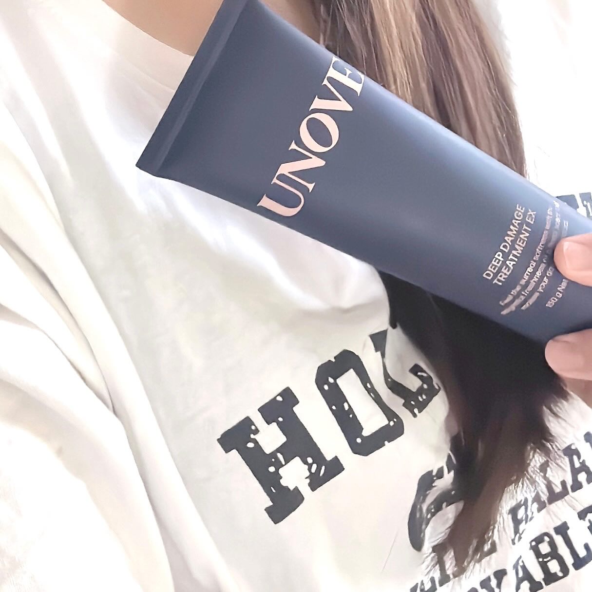 UNOVEディープダメージトリートメントEX大人気のリピーター続出トリートメント✨私もこのトリートメントは大好きで、何度も使ってる💙商品の特徴として、ケラチンーPFが30,000ppm配合されていて、髪の毛を素早く補修してくれるんだって。パー...