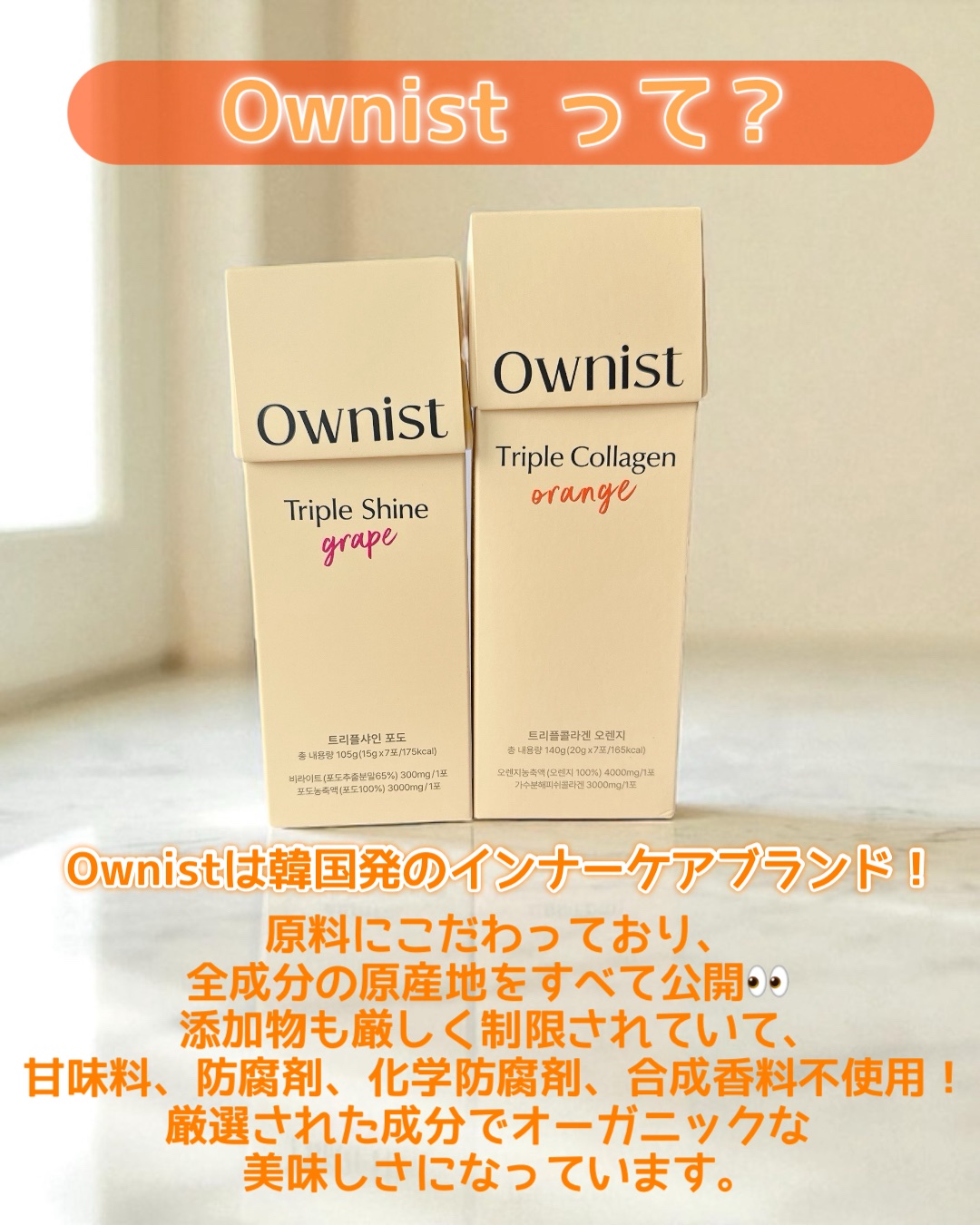 #PROwnistトリプルコラーゲンオレンジトリプルシャイングレープこだわりのある原料と合成甘味料などの添加物を使用しない韓国発のインナーケアブランド。トリプルコラーゲンオレンジはたるみが気になる方向けの飲むコラーゲンケア🍊濃厚なオレンジ味で...