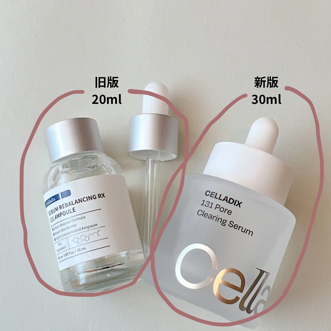 🌟celladix131ポアクリアリングセラム人気のセラムが、価格はそのまま容量は20mlから30mlに増量!よりクリアで洗練されたパッケージデザインも魅力です💫「131セラム」の特許比率(コレステロール:セラミド:脂肪酸=1:3:1)配合洗...