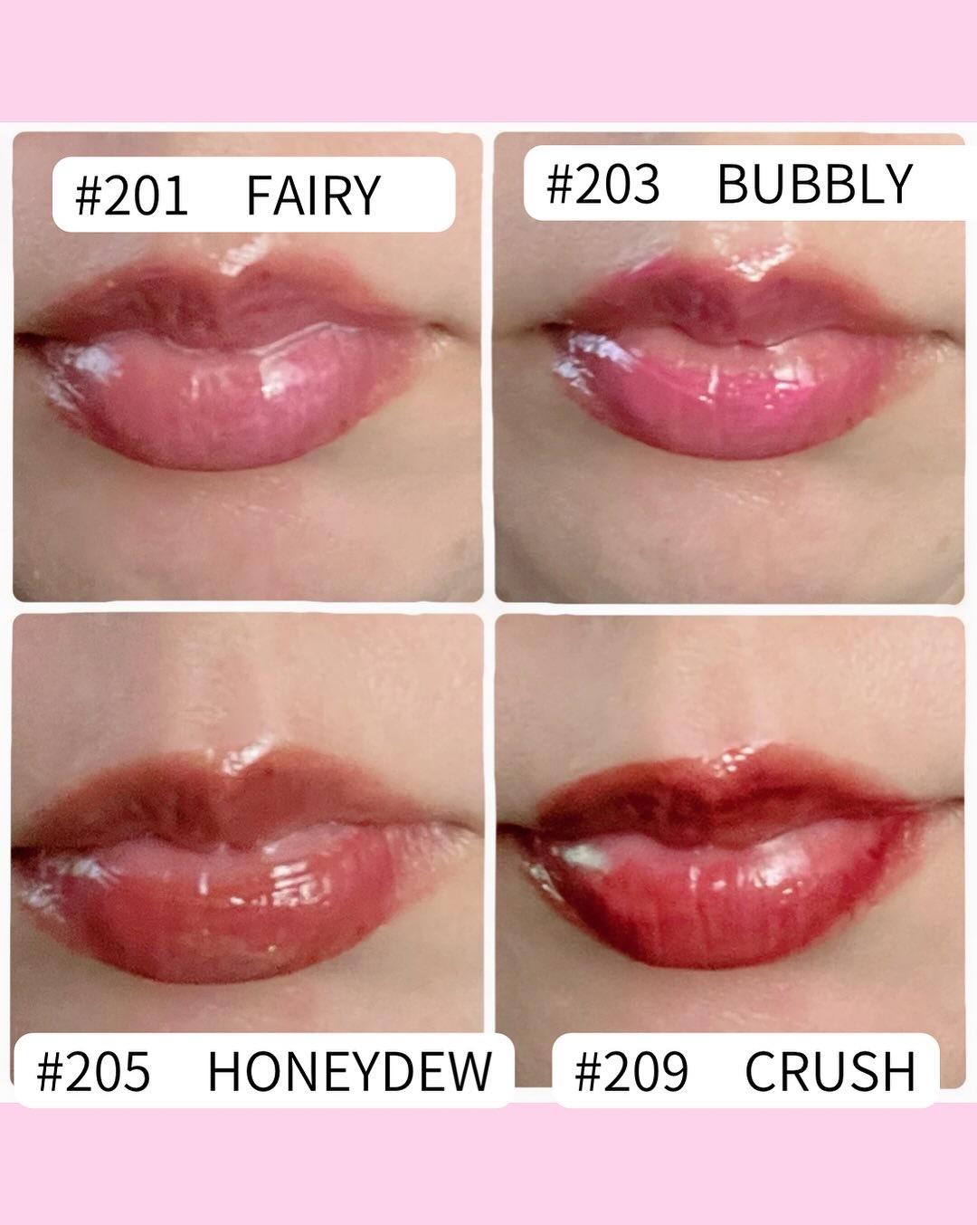 - <201 フェアリー> ダイマージリノール酸ジイソステアリル、ジフェニルシロキシフェニルトリメチコン、ビスジグリセリルポリアシルアジペート-2、水、ジフェニルジメチコン、水添ポリイソブテン、セチルPEG/PPG-10/1ジメチコン、ポリソルベート60、ペンチレングリコール、グリセリン、イソステアリン酸ポリグリセリル-4、フェノキシエタノール、1,2-ヘキサンジオール、セテアレス-20、酸化チタン (CI 77891)、(アクリル酸ヒドロキシエチル/アクリロイルジメチルタウリンNa)コポリマー、ステビオシド、スクワラン、香料、ジラウラミドグルタミドリシンNa、エチルヘキシルグリセリン、エチレンジアミンジコハク酸3Na、赤色227号 (CI 17200)、水酸化Al、黄色5号 (CI 15985)、ポリアクリル酸アンモニウム、イソステアリン酸ソルビタン、黄色4号 (CI 19140)、BG、赤色223号 (CI 45410)、青色1号 (CI 42090)、アラントイン、パンテノール、ツボクサエキス、ヒアルロン酸、加水分解ヒアルロン酸、ヒアルロン酸Na <203 バブリー> ダイマージリノール酸ジイソステアリル、ジフェニルシロキシフェニルトリメチコン、ビスジグリセリルポリアシルアジペート-2、水、ジフェニルジメチコン、水添ポリイソブテン、セチルPEG/PPG-10/1ジメチコン、ポリソルベート60、ペンチレングリコール、グリセリン、イソステアリン酸ポリグリセリル-4、フェノキシエタノール、1,2-ヘキサンジオール、セテアレス-20、(アクリル酸ヒドロキシエチル/アクリロイルジメチルタウリンNa)コポリマー、ステビオシド、酸化チタン (CI 77891)、スクワラン、香料、ジラウラミドグルタミドリシンNa、エチルヘキシルグリセリン、赤色227号 (CI 17200)、エチレンジアミンジコハク酸3Na、黄色5号 (CI 15985)、イソステアリン酸ソルビタン、水酸化Al、ポリアクリル酸アンモニウム、黄色4号 (CI 19140)、BG、青色1号 (CI 42090)、アラントイン、パンテノール、ツボクサエキス、ヒアルロン酸、加水分解ヒアルロン酸、ヒアルロン酸Na <204 レア> ダイマージリノール酸ジイソステアリル、ジフェニルシロキシフェニルトリメチコン、ビスジグリセリルポリアシルアジペート-2、水、ジフェニルジメチコン、水添ポリイソブテン、セチルPEG/PPG-10/1ジメチコン、ポリソルベート60、ペンチレングリコール、グリセリン、イソステアリン酸ポリグリセリル-4、フェノキシエタノール、1,2-ヘキサンジオール、セテアレス-20、(アクリル酸ヒドロキシエチル/アクリロイルジメチルタウリンNa)コポリマー、酸化チタン (CI 77891)、ステビオシド、スクワラン、香料、ジラウラミドグルタミドリシンNa、エチルヘキシルグリセリン、赤色227号 (CI 17200)、黄色5号 (CI 15985)、エチレンジアミンジコハク酸3Na、イソステアリン酸ソルビタン、水酸化Al、ポリアクリル酸アンモニウム、黄色4号 (CI 19140)、青色1号 (CI 42090)、BG、アラントイン、パンテノール、ツボクサエキス、ヒアルロン酸、加水分解ヒアルロン酸、ヒアルロン酸Na <205 ハニーデュー> ダイマージリノール酸ジイソステアリル、ジフェニルシロキシフェニルトリメチコン、ビスジグリセリルポリアシルアジペート-2、水、ジフェニルジメチコン、水添ポリイソブテン、セチルPEG/PPG-10/1ジメチコン、ポリソルベート60、ペンチレングリコール、グリセリン、イソステアリン酸ポリグリセリル-4、フェノキシエタノール、1,2-ヘキサンジオール、セテアレス-20、(アクリル酸ヒドロキシエチル/アクリロイルジメチルタウリンNa)コポリマー、酸化チタン (CI 77891)、ステビオシド、スクワラン、香料、ジラウラミドグルタミドリシンNa、エチルヘキシルグリセリン、赤色227号 (CI 17200)、黄色5号 (CI 15985)、エチレンジアミンジコハク酸3Na、イソステアリン酸ソルビタン、水酸化Al、ポリアクリル酸アンモニウム、黄色4号 (CI 19140)、青色1号 (CI 42090)、BG、アラントイン、パンテノール、ツボクサエキス、ヒアルロン酸、加水分解ヒアルロン酸、ヒアルロン酸Na <206 トフィー> ダイマージリノール酸ジイソステアリル、ジフェニルシロキシフェニルトリメチコン、ビスジグリセリルポリアシルアジペート-2、水、ジフェニルジメチコン、水添ポリイソブテン、セチルPEG/PPG-10/1ジメチコン、ポリソルベート60、ペンチレングリコール、グリセリン、イソステアリン酸ポリグリセリル-4、フェノキシエタノール、1,2-ヘキサンジオール、セテアレス-20、(アクリル酸ヒドロキシエチル/アクリロイルジメチルタウリンNa)コポリマー、ステビオシド、スクワラン、香料、ジラウラミドグルタミドリシンNa、酸化チタン (CI 77891)、エチルヘキシルグリセリン、黄色5号 (CI 15985)、エチレンジアミンジコハク酸3Na、黄色4号 (CI 19140)、赤色227号 (CI 17200)、イソステアリン酸ソルビタン、赤色223号 (CI 45410)、青色1号 (CI 42090)、水酸化Al、ポリアクリル酸アンモニウム、BG、アラントイン、パンテノール、ツボクサエキス、ヒアルロン酸、加水分解ヒアルロン酸、ヒアルロン酸Na <207 フレイム> ダイマージリノール酸ジイソステアリル、ジフェニルシロ