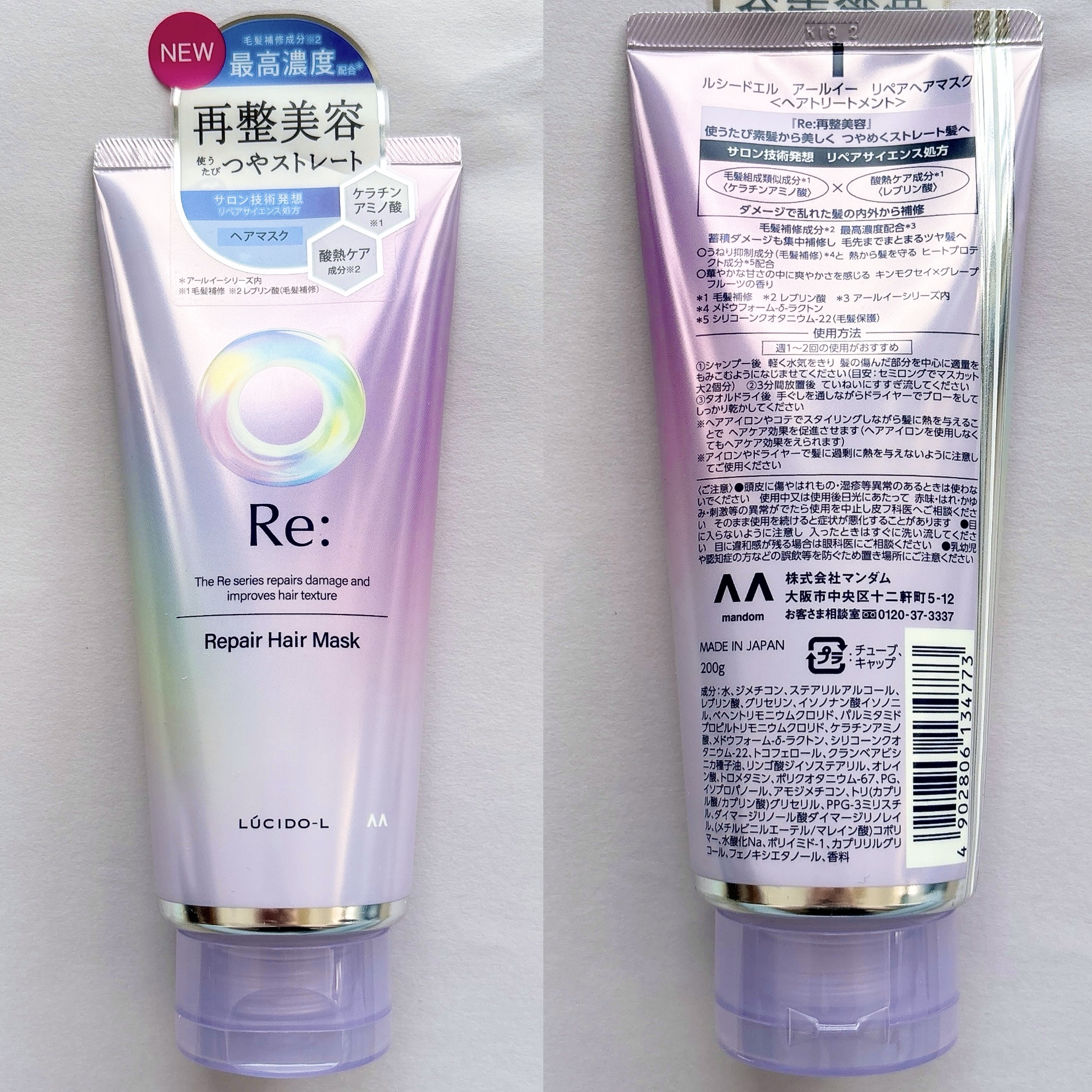 マンダムルシードエル質感再整ヘアマスク200g¥1320ネットにて購入繰り返すヘアカラーや日々の熱器具の使用によるハイダメージヘアに対応した質感再整シリーズ。サロン技術発想の「酸熱トリートメント成分」※レブリン酸(毛髪補修)配合で熱を活かして...