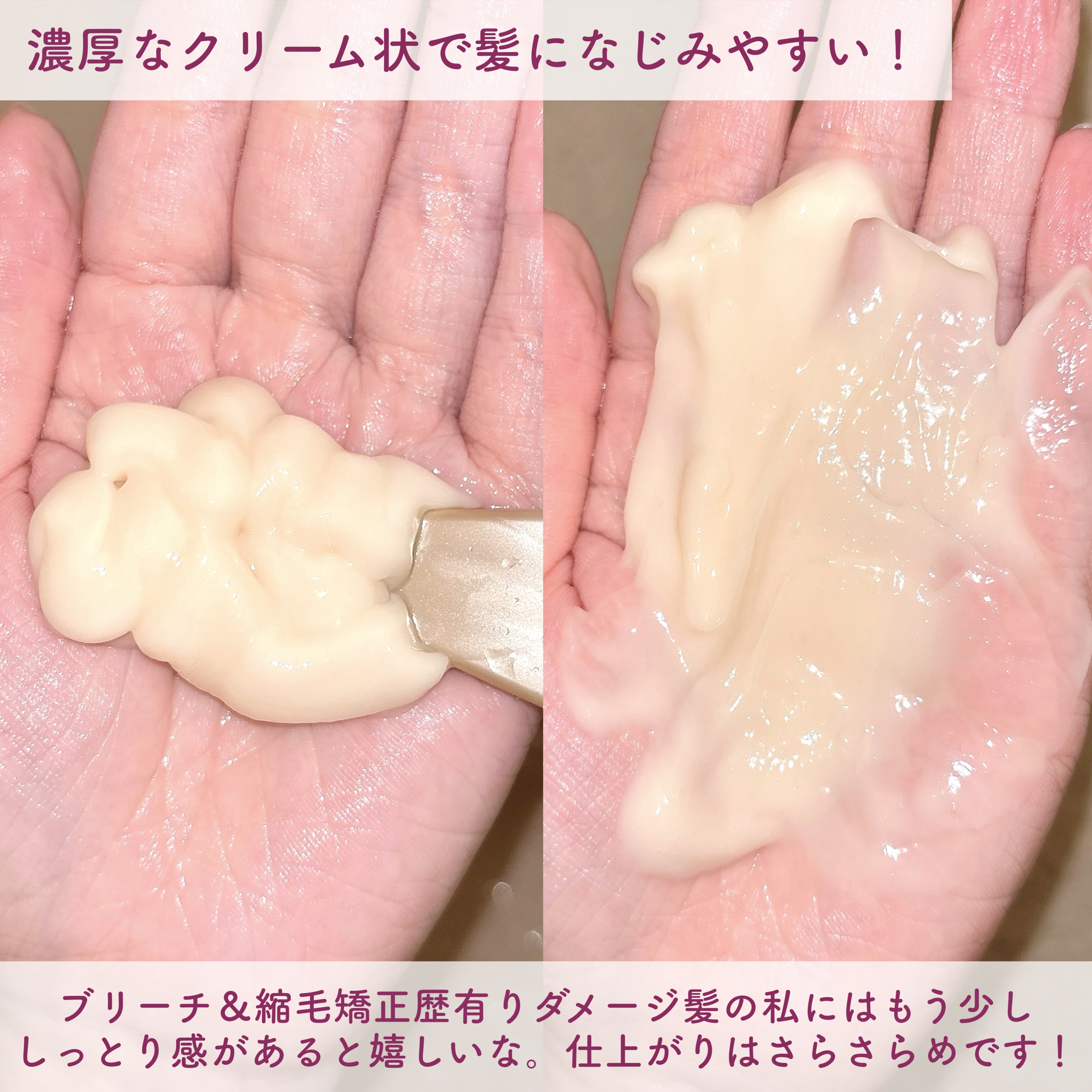 | シャンプーはもったりとしたテクスチャー!トリートメントは、こっくりとしたテクスチャーですが伸びが良く、髪に馴染ませやすいです♡ | 詳細を見る | |