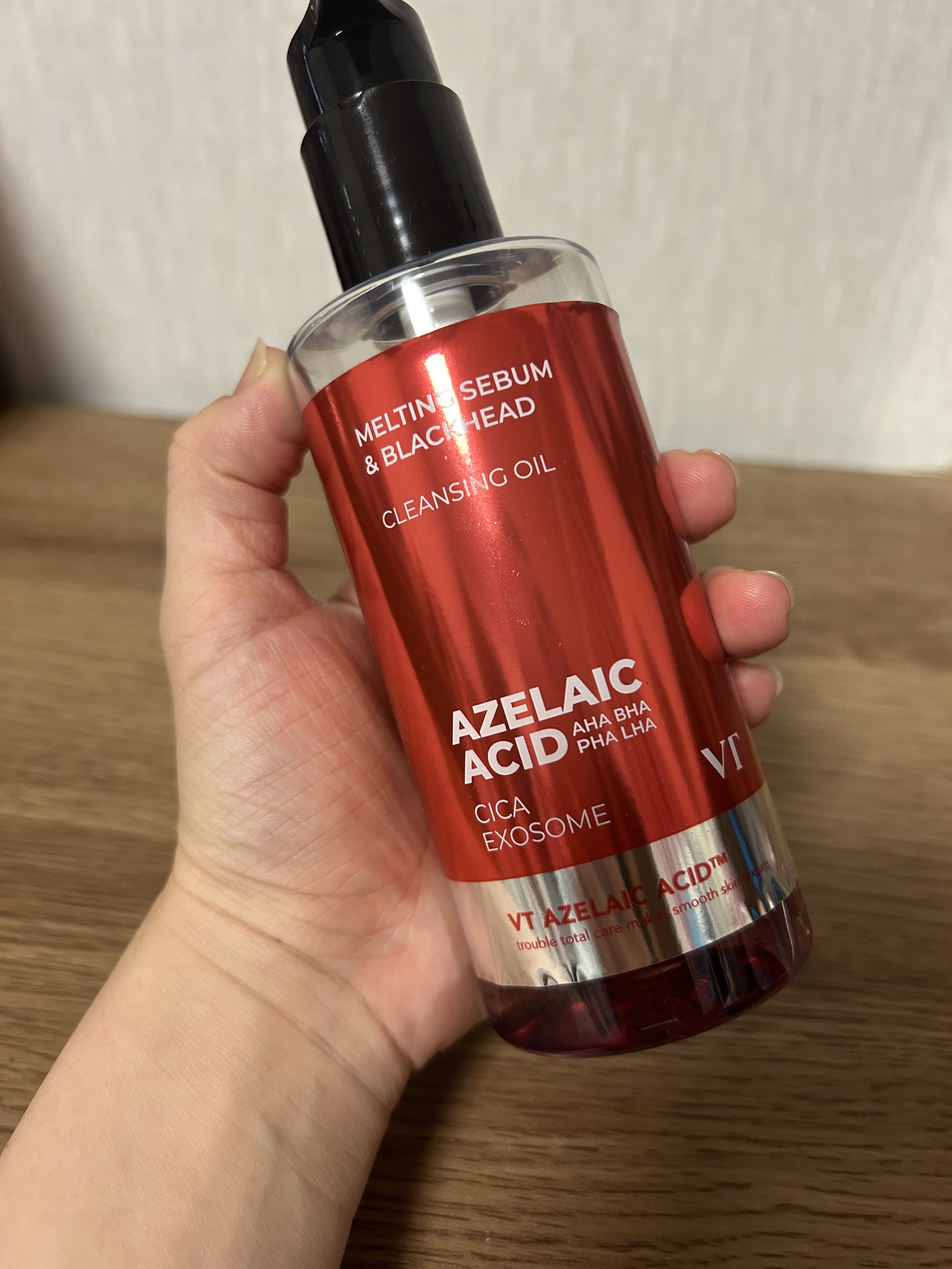 - 最近話題の毛穴ケア・整肌成分アゼライン酸!VTからはクレンジングオイルが登場! ポイントメイクまで落とすしっかりした洗浄力で、毛穴・皮脂までケアし保湿まで叶える一石三鳥アゼライン酸クレンジングオイル。 19種の植物性オイル*1も配合で、目に見えるブラッドヘッド*2から、隠れているホワイトヘッド*2、皮脂まですっきりケアします! ダブル洗顔不要! ※パッケージリニューアル ■このような方へおすすめ メイク・毛穴までディープクレンジング求める方 クレンジングでスキンケアまで行いたい方 ツッパリ感の少ないクレンジングを探していた方 ブラックヘッド*ケアも行いたい方 *1ダイズ油、アルガニアスピノサ核油、ユズ果実油、コメヌカ油、オタネニンジン種子油、アーモンド油、ザクロ種子油、リンゴ種子油、ホホバ種子油、ツバキ種子油、、バオバブ種子油、ユチャ種子油、ベニバナ種子油、ヒマワリ種子油、ヒポファエラムノイデス油、オリーブ果実油、アボカド油、アンズ核油、クロフサスグリ種子油(いずれも保湿) *2古い角質による