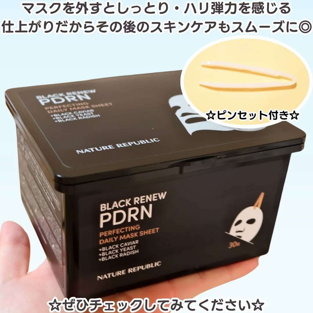 @naturerepublic_jp30枚入りで毎日惜しみなく使える、キャビアパック見つけた🖤肌のハリや弾力が気になる日に頼りたい【ブラックPDRNデイリーシートマスク】。とろ〜り濃厚なミルク美容液が朝の肌にも夜の肌にもやさしくなじんで、もち...