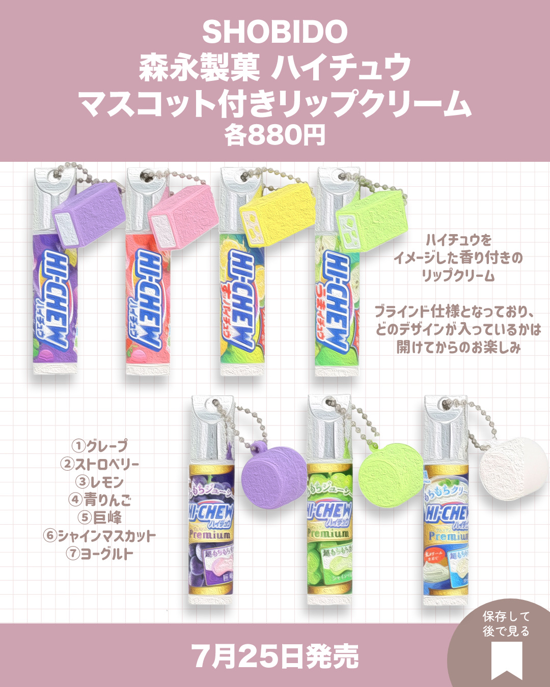 ハイチュウがリップに?!可愛いチャーム付きのリップを発見🍬SHOBIDOハイチュウマスコット付きリップクリームセット全7種各¥880(税込)こんにちは!うみかです!いつも♡📎フォローありがとうございます🫶🏻本日はハイチュウ型のマスコットがつい...