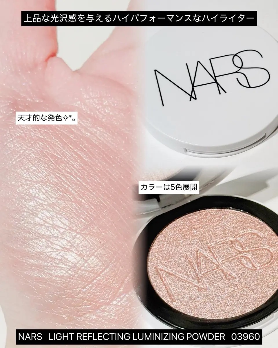 NARSさまからいただきました!光の反射で透明感のある肌に導くライトリフレクティングシリーズからハイライトが登場〜☺️しっかりキラッとしてくれるのに、肌に溶け込んでくれて浮かない!上品なツヤで小じわや毛穴をぼかしてくれます。NARSの下地、パ...