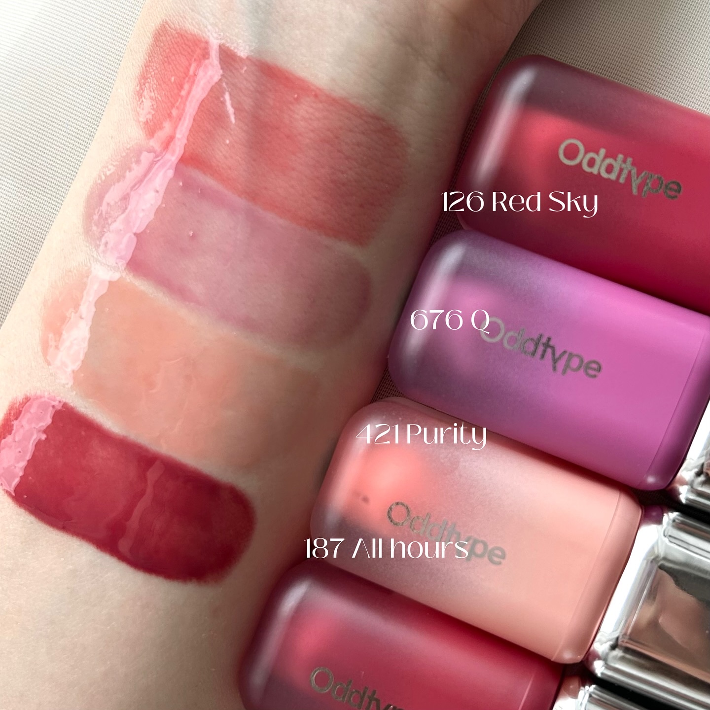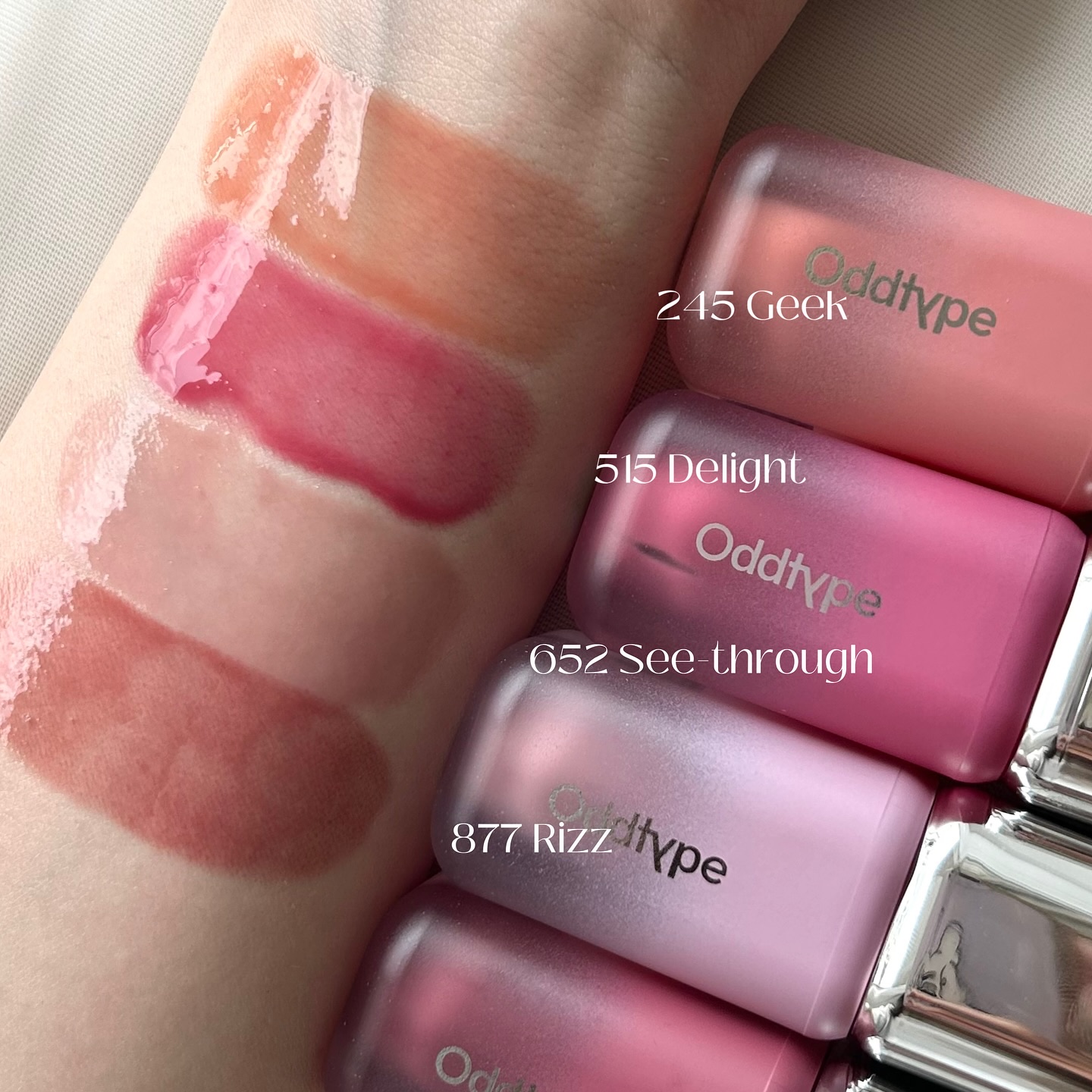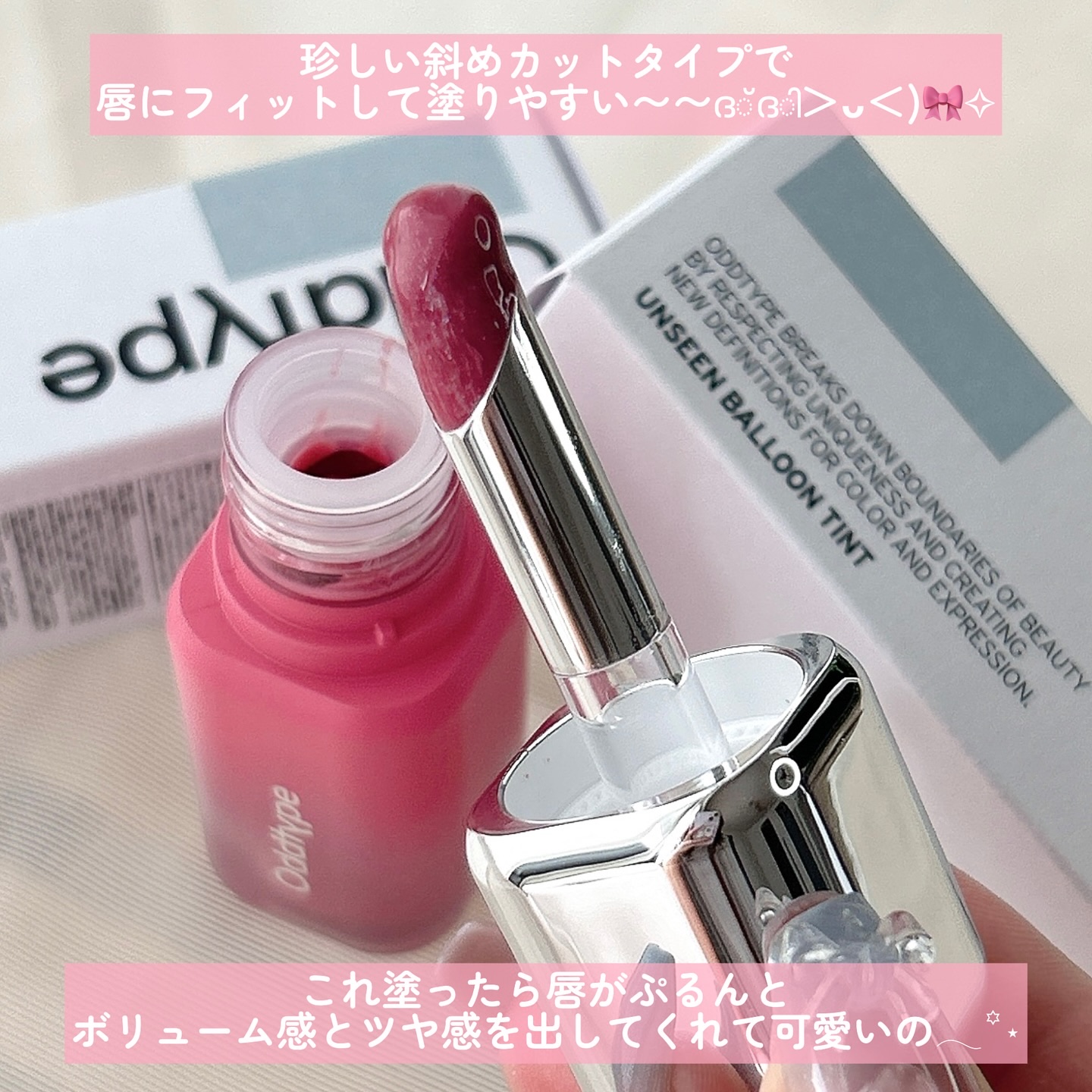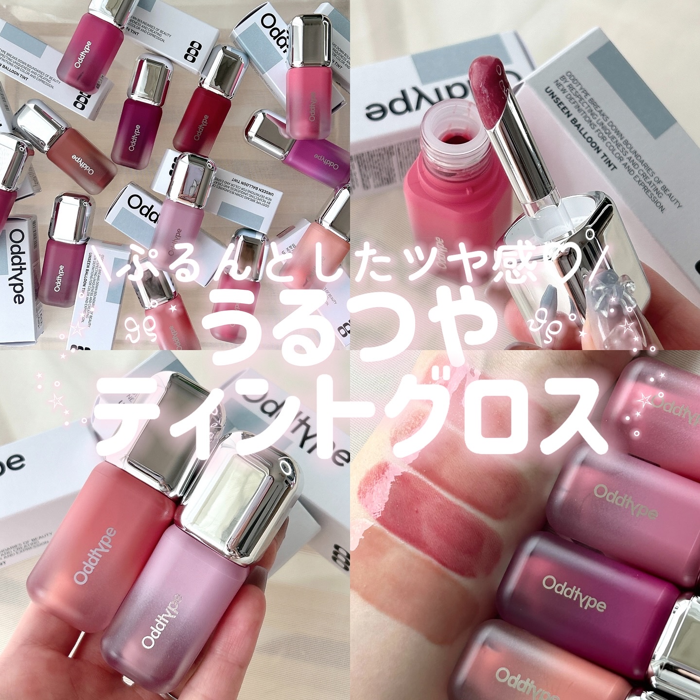 Oddtypeぽってりツヤリップ🖤12色レビュー🪄LDK雑誌にて2025年ベスト商品として選ばれた"バルーンティント"はきれいなツヤ+ぽってり質感+ブラシタイプのアプリケーターが特徴的なティント✨✧oddtypeアンシーンバルーンティント12...
