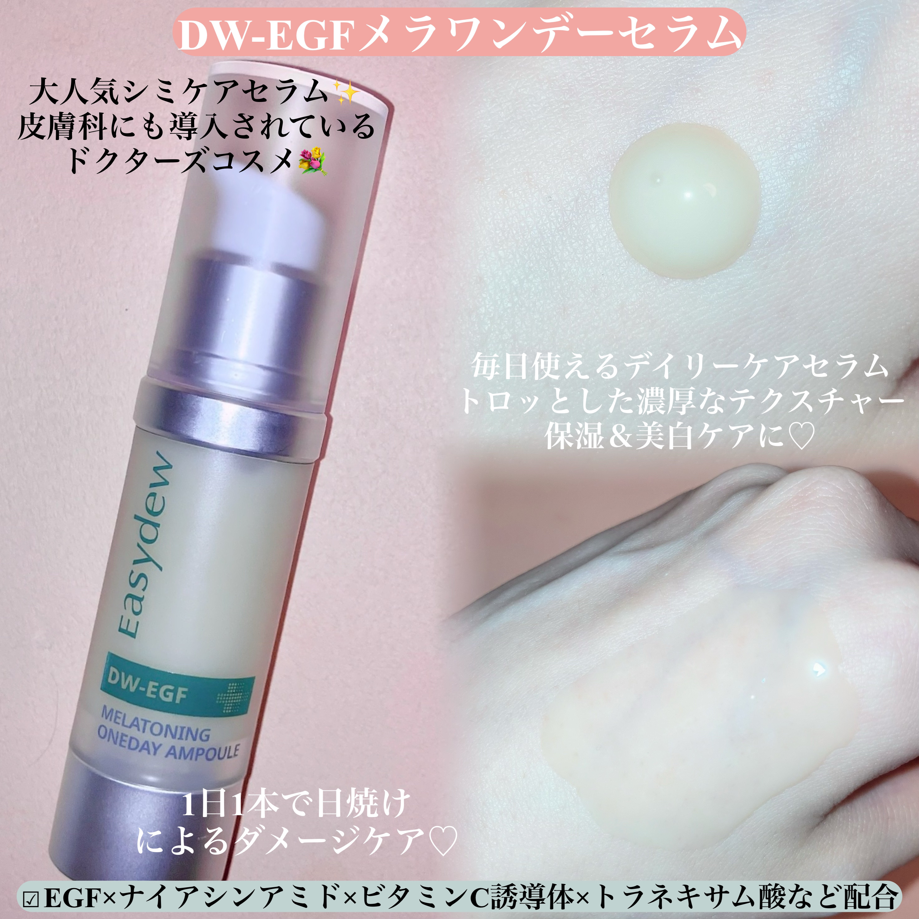 #PREasydewDW-EGFメラワンデーセラムDW-EGFメラワンデーセラムシカアロエメラワンデーセラムは大熊製薬の独自成分DW-EGF™︎*1配合でシミ、色ムラなど日焼けによるダメージをマルチケア*2。もっちりクリーミーなテクスチャーで...