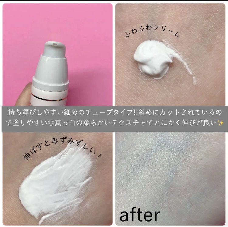 持ち運びしやすいチューブタイプの日焼け止め✨ なめらかなテクスチャで、肌にしっかり馴染んでくれました🥹💗 日焼け止め特有のベタつき感や白浮きがなく使いやすかったです◎ みずみずしい使用感なので、さっぱりとした仕上がりに…!! ツヤ感も出るのでメイク前の使用がオススメです◎ これから暑い日が続くので重宝します✨