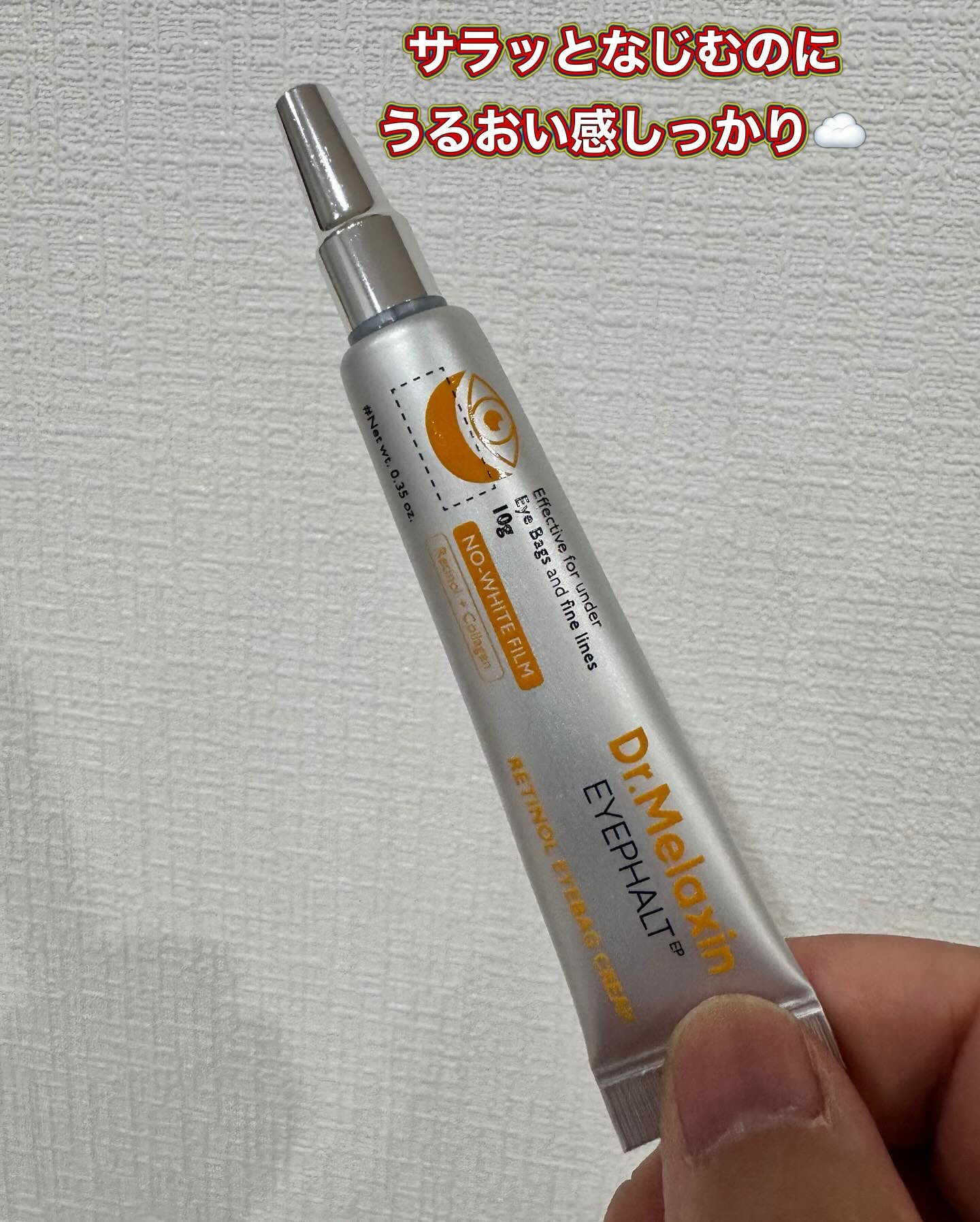 .SNSで話題の「アイファルトクリーム」にレチノールがプラス✨Dr.Melaxinレチノールアイファルトアイバッククリーム👀乾燥やキメの乱れが気になる目元におすすめのアイケアクリーム💛やわらかくしっとりと肌になじみ、白浮きしにくいから日中も使...