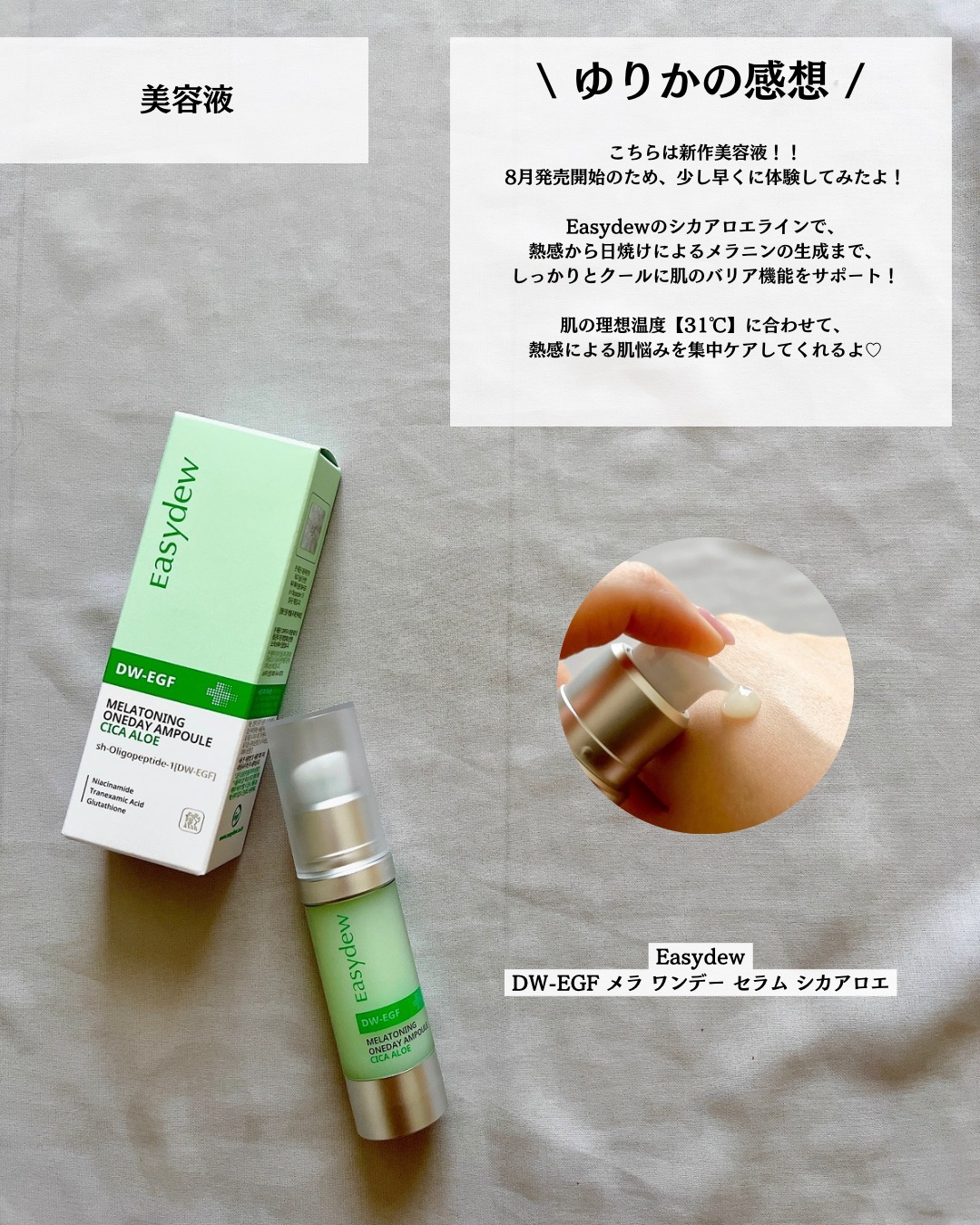 #PR#イージーデュー@EasydewJAPAN夏の必須スキンケアアイテム!Easydew DW-EGFメラワンデーセラム💛明るい印象の肌を目指すなら✨️DW-EGFメラワンデーセラムシカアロエ💚8月発売開始の新商品✨️冷感・毛穴・赤みケアし...