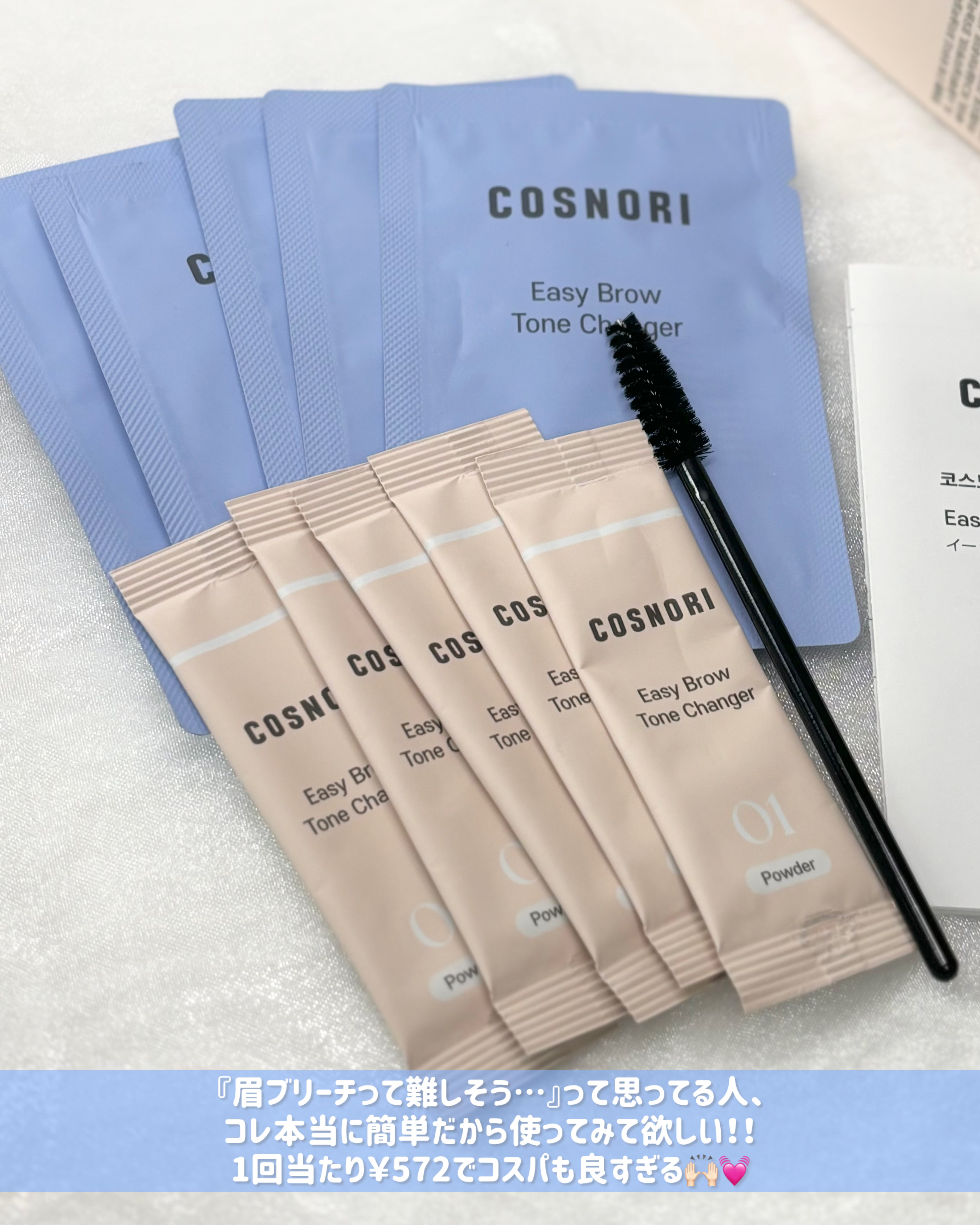 【COSNORI】✔️イージーブロウトーンチェンジャー「独自のペプチド」配合のブローチ剤で脱色によるダメージを同時ケアできる眉のブリーチ剤!混ぜるだけで簡単に塗れるし、置き時間も短くて良いし、眉ブリーチ初心者さんにもおすすめ^^1回分572円...