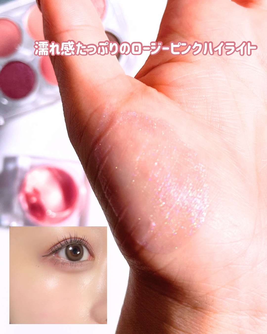 〖透明感のある輝きが手に入る!〗\グリッターの宝庫ハイライト!/❤︎Lummirフラッシュポットハイライト<01ローズシェルベール>✓全2色ツールなしで簡単にツヤを演出できるハイライトです!しっとり伸びるテクスチャで密着力も高く指...