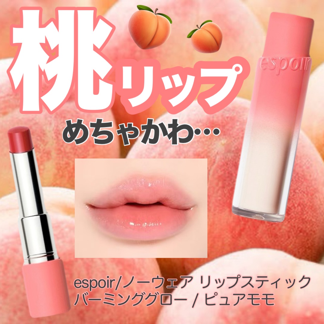 ちゅるんとした自然なヘルシーピーチカラーが本当にかわいい♡🍑 発色、潤い、ツヤ感、全てを兼ね揃えていてこれぞまさにネンマクリップ…😳💕 ジェル膜テクノロジー搭載で、ベタベタしない付け心地も最高🥺