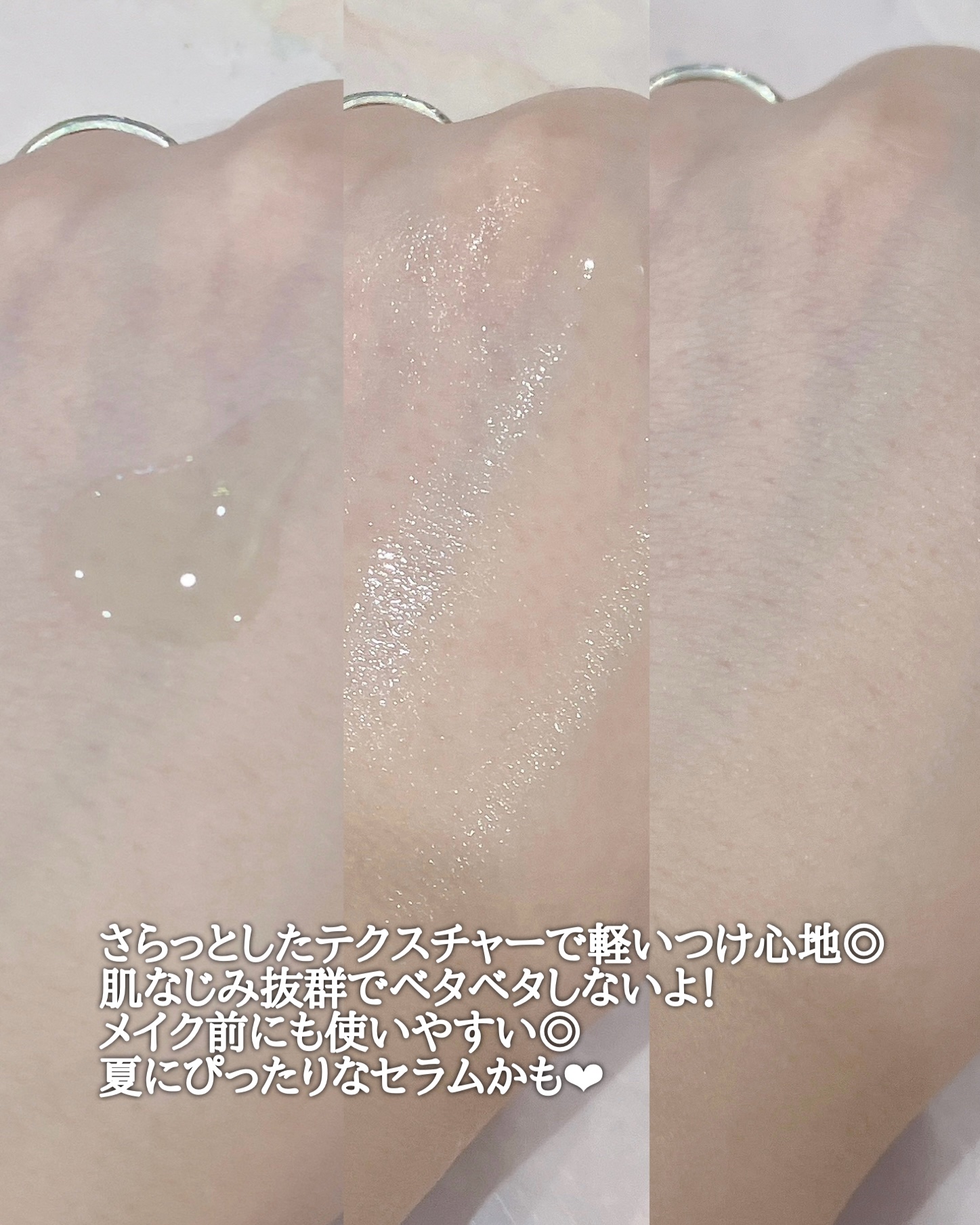 | テクスチャーはまるで水のように軽くて、肌にスッと馴染む心地よさ🩵 | 詳細を見る | |