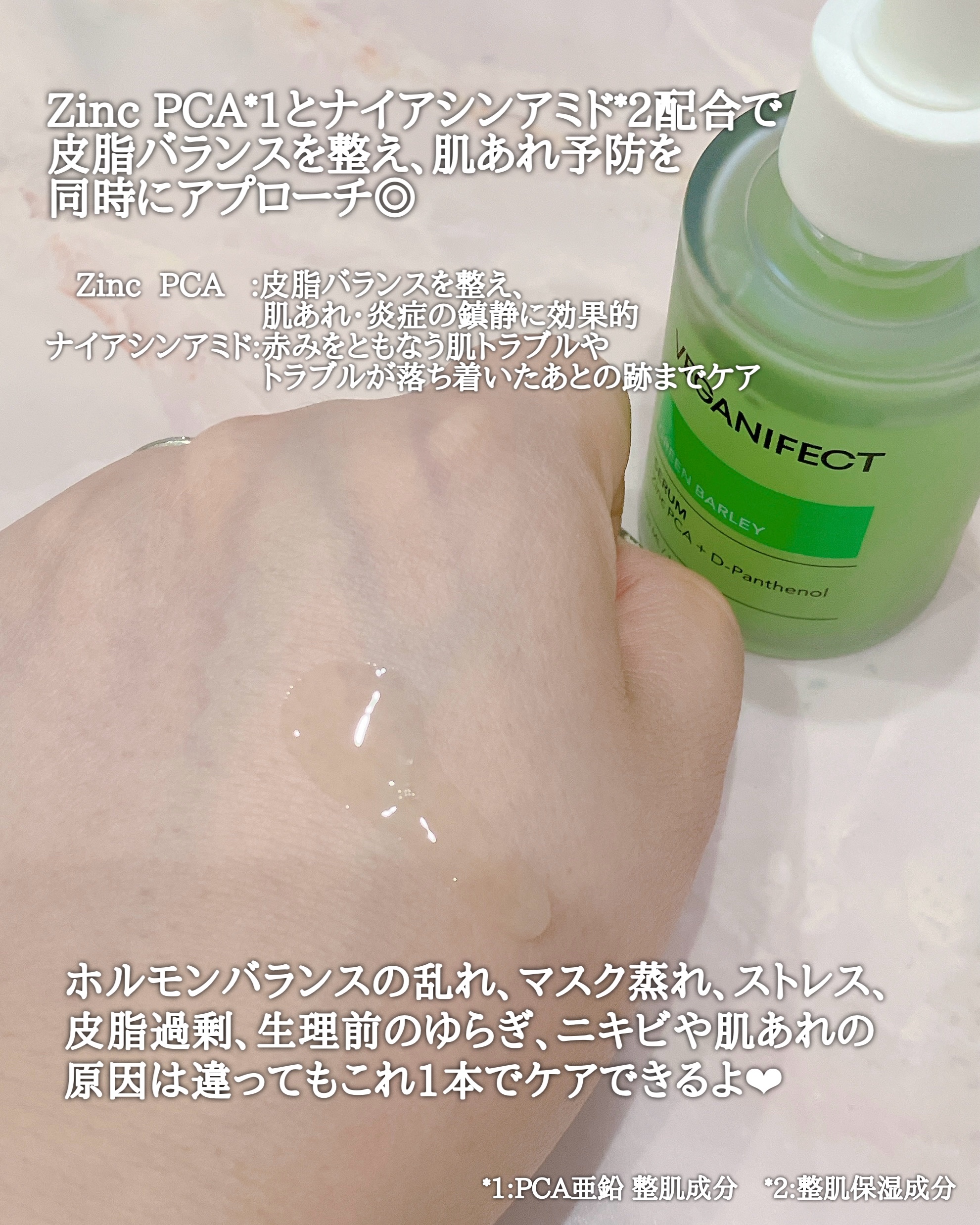 ✴︎VEGANIFECT@veganifect_jp青麦ジンクセラムホルモンバランスの乱れやマスク蒸れ、ストレス、皮脂過剰、生理前のゆらぎなどによるニキビや肌荒れの原因にアプローチしてくれるのがこのセラム!ZincPCA(PCA亜鉛、整肌成分...