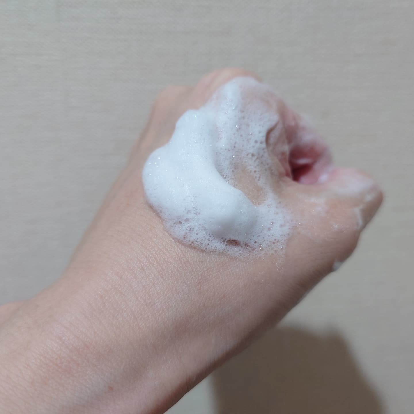 重めのテクスチャーのフォーム ネットで泡立てると弾力のある モチモチの泡ができあがり このモチモチさが高密着の秘訣 顔に泡を馴染ませる間も 指が顔に触れないモチモチ感をキープ 泡切れは良くストレスフリーな洗い心地 何より洗っている間の 心地が良い点がとても気に入りました リーズナブルな価格も続けやすくて良いです