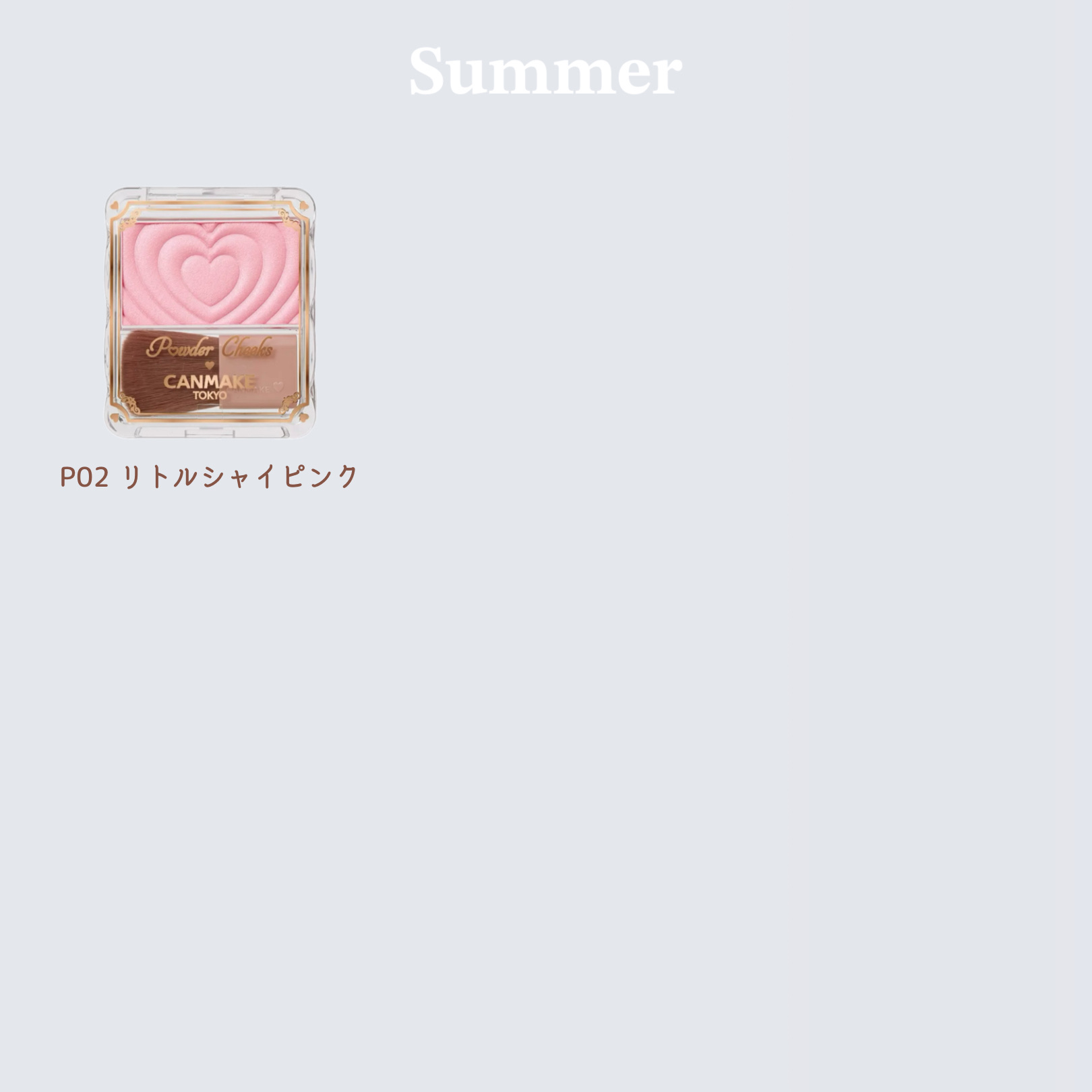 | チークランキング第2位 | 肌に溶け込むようにしっとりとしたパウダーは ムラになりにくく、クリアな発色。繊細なパールのツヤが上品にきらめくよ。 | 詳細を見る | |