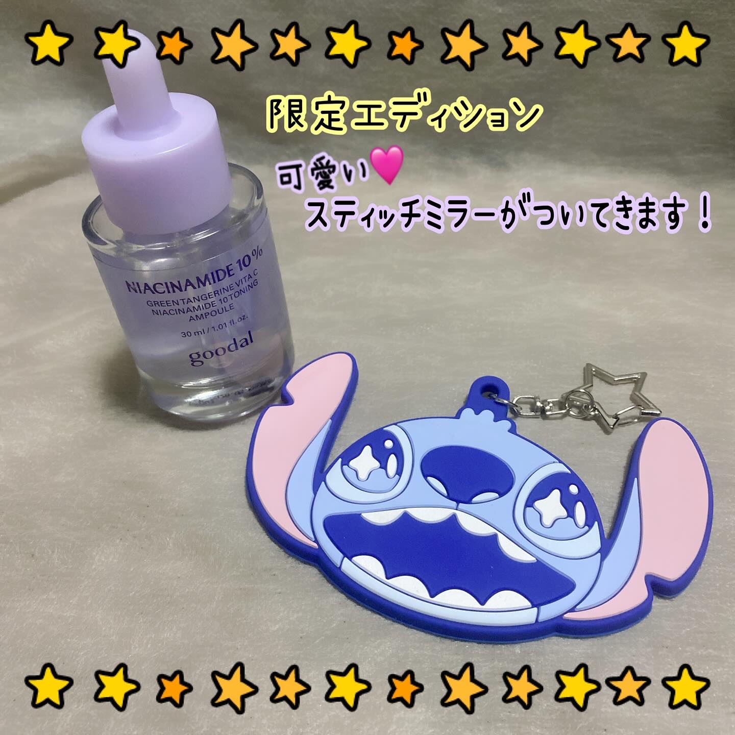#PR#goodalgoodalグリーンタンジェリンナイアシンアミド10ブレミッシュアンプルスティッチのミラーチャーム付き!ナイアシンアミドが肌のくすみやシミ、肌のキメなどにアプローチ◎とろみがありながらベタつかず、しっとりすべすべとした使い...