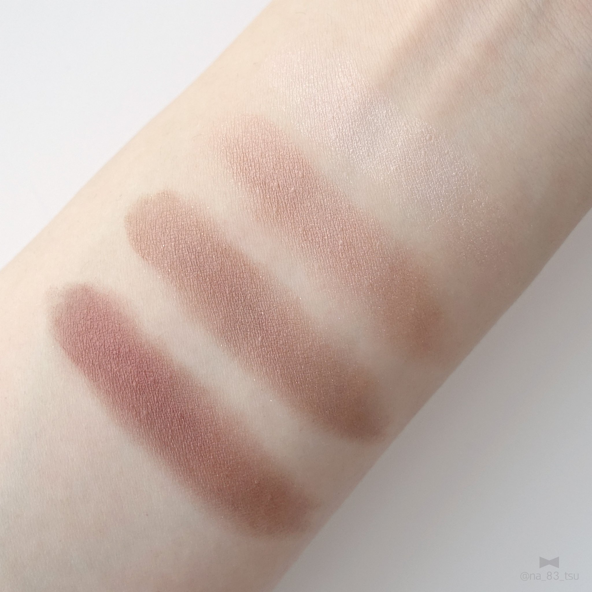 まぶたの皮膚って美しいから、肌が透けるような透明感が欲しかった。 最初は購入見送るつもりだったんですがこれも購入して良かった! 上の淡いカラーは本当にベースとして使うのがピッタリ。アイホールに乗せると、くすみをいい感じにぼかしてくれます。 そしてこのパープルっぽい締め色も濃すぎないカラーなのに、しっかり目元を引き締めてくれるんですよ✨ イマドキの目元を作るのにぴったりなアイテムだと思います!