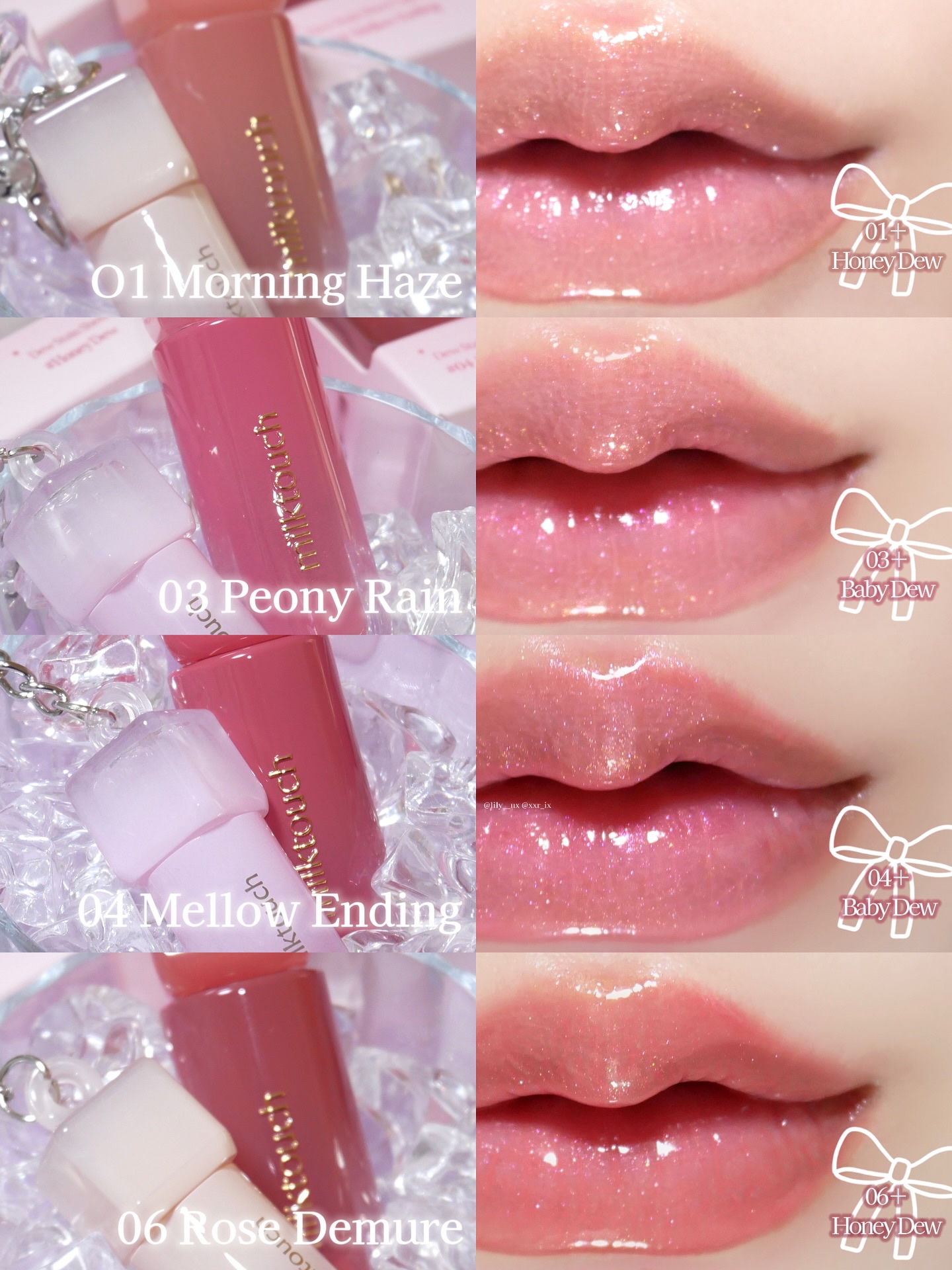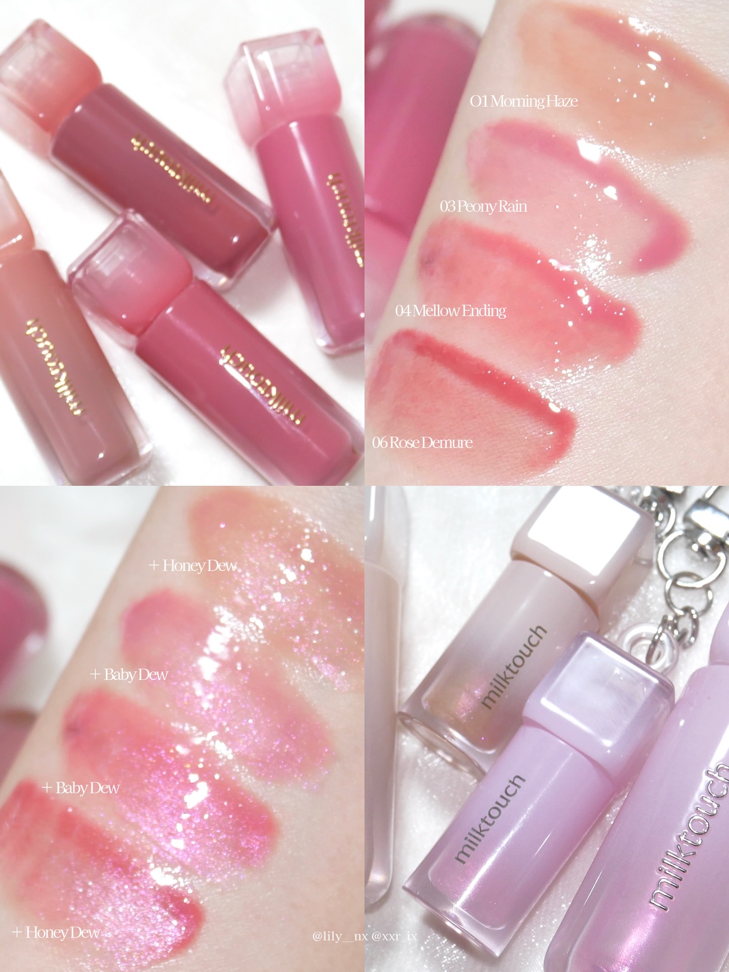 ⸝꙳.˖𝑚𝑖𝑙𝑘𝑡𝑜𝑢𝑐ℎ˖.⸝꙳CosmeLabで出会った𝑚𝑖𝑙𝑘𝑡𝑜𝑢𝑐ℎ🍼ˎˊ˗DEWSTAINSHINEDUOセットをいただきました𓂃⸝⸝꙳#04メロウエンディングは透けツヤとやわらかい血色感がたまらなく可愛いの🍑ベイビーチューのキー...
