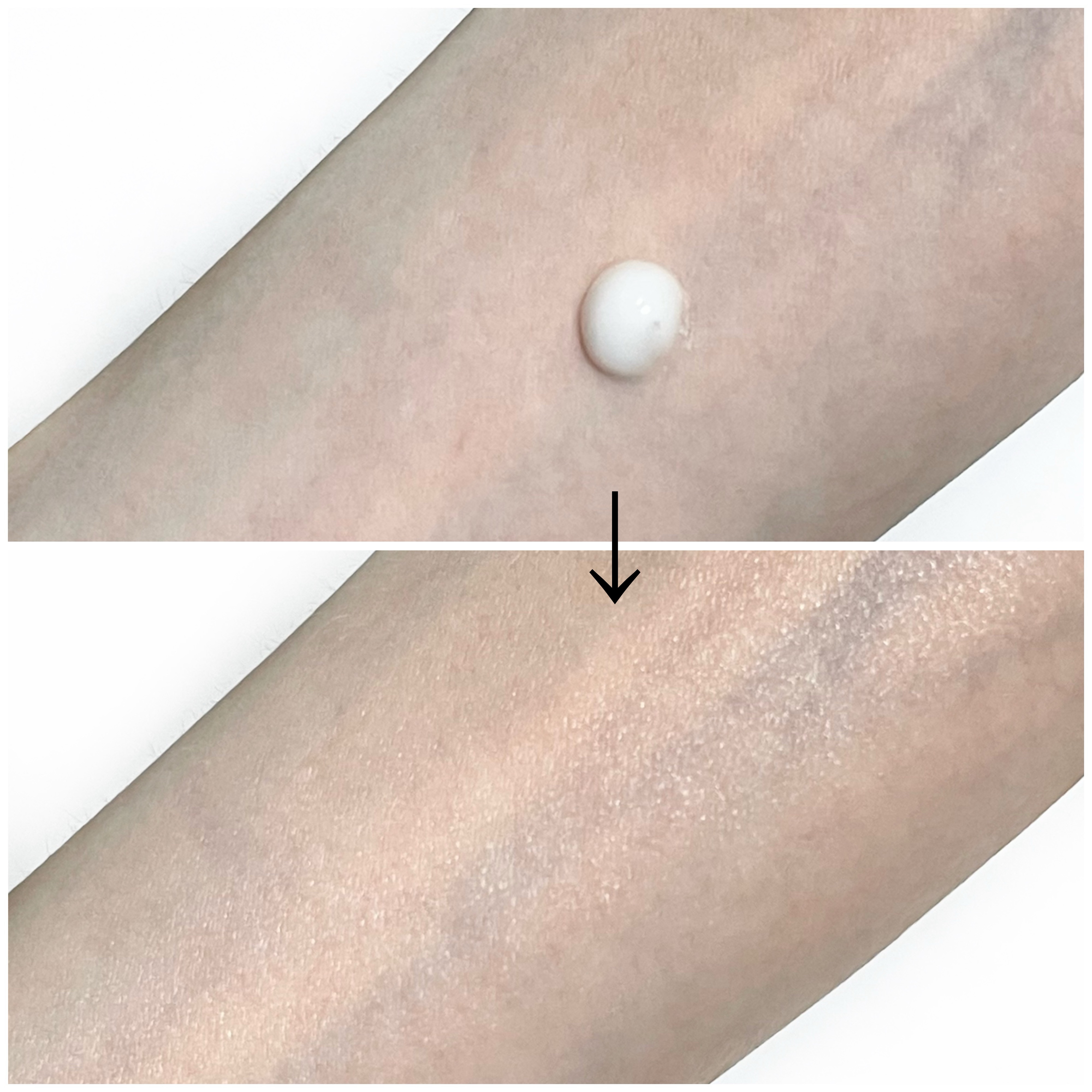 しっとりしたテクスチャーで、伸びも良いです☺️ 白くトーンアップし、毛穴も目立たなくなります。 こちらは塗った後に洗い流す必要がないので、お風呂上がりなどメイクをしていない時に使用した場合はそのまま寝てOK🙆♀️で、とても楽です♪ 香りは、優しいミルクの香りです🍼 少し残念だと思ったのは、素早く塗らないとムラができてしまったり、白いモロモロが出てきてしまうところです😭 また、フェイスクリームとしても下地としても使用できますが、紫外線防止効果はないので、日中に使用する時は日焼け止めと併用する必要があります🙂 お泊まりなどすっぴんを見せたくないという時や、色白に見せたい方におすすめです❣️